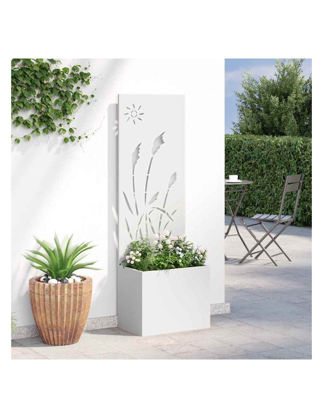 - Costruzione in Acciaio Robustissimo Fatto in acciaio resistente, questo pannello da giardino è super robusto e perfetto per l'esterno. La scelta dell'acciaio assicura che sia in grado di affrontare tutte le condizioni atmosferiche, offrendo anni di privacy e decorazione.