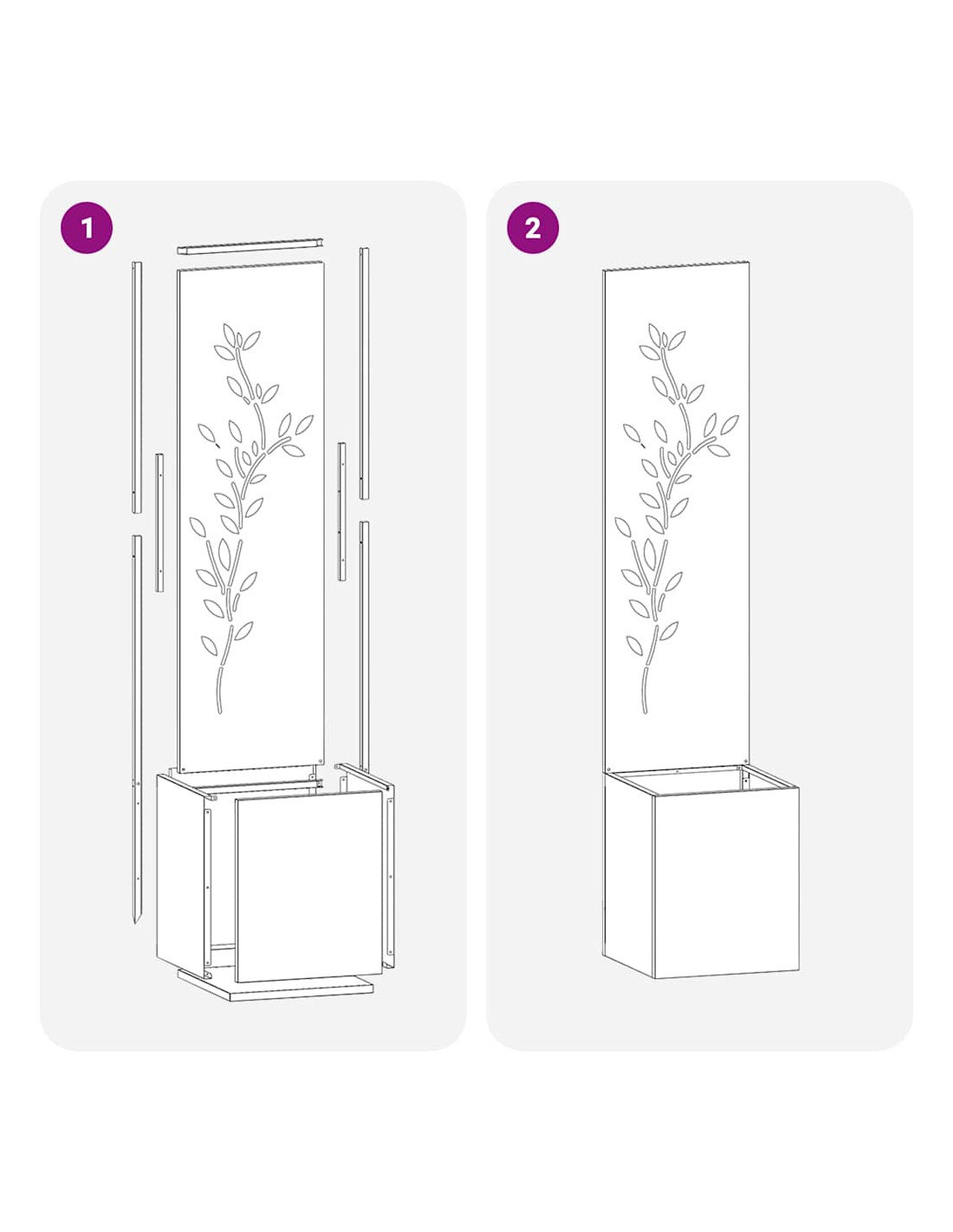- Costruzione in Acciaio Questo paravento è resistente e offre una barriera solida contro le intemperie e gli sguardi curiosi. Con poca manutenzione, durerà a lungo. La finitura opaca e liscia garantisce privacy e aggiunge un aspetto elegante al tuo giardino o terrazza.
