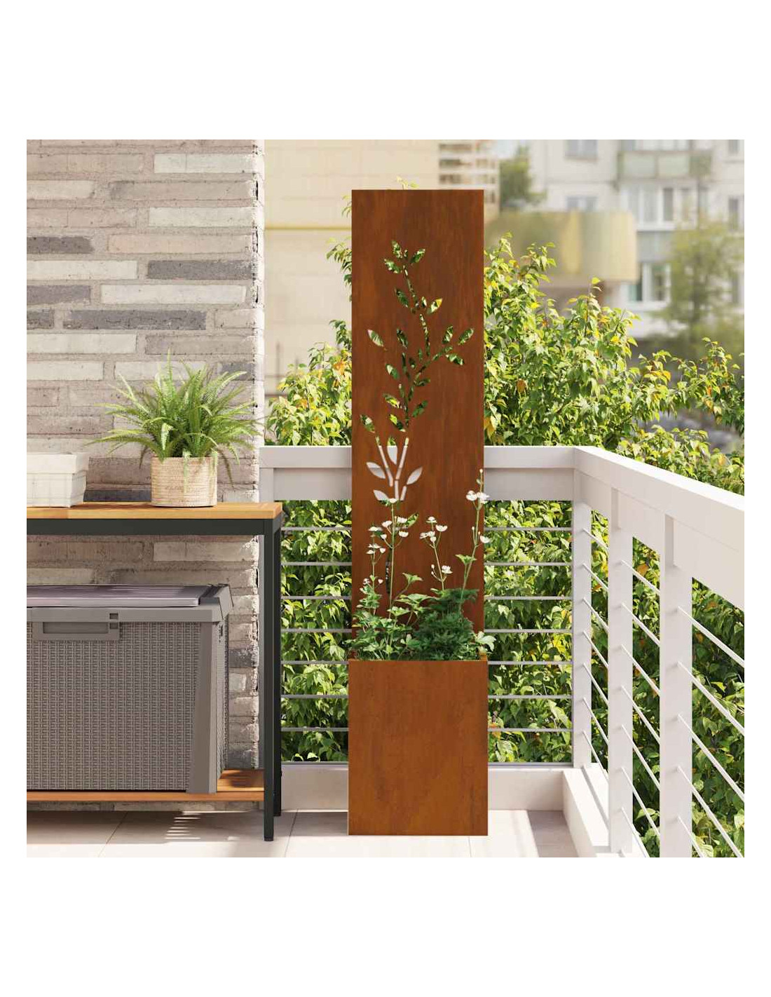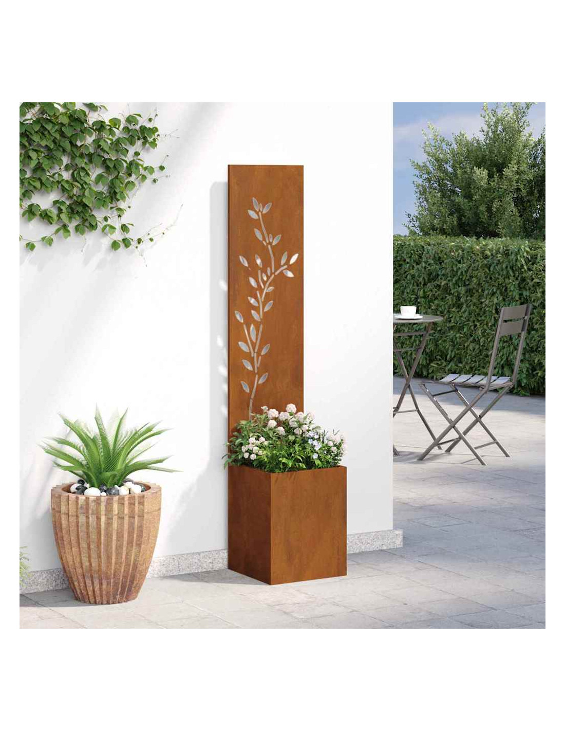 - Costruzione in Acciaio Questo paravento è resistente e offre una barriera solida contro le intemperie e gli sguardi curiosi. Con poca manutenzione, durerà a lungo. La finitura opaca e liscia garantisce privacy e aggiunge un aspetto elegante al tuo giardino o terrazza.