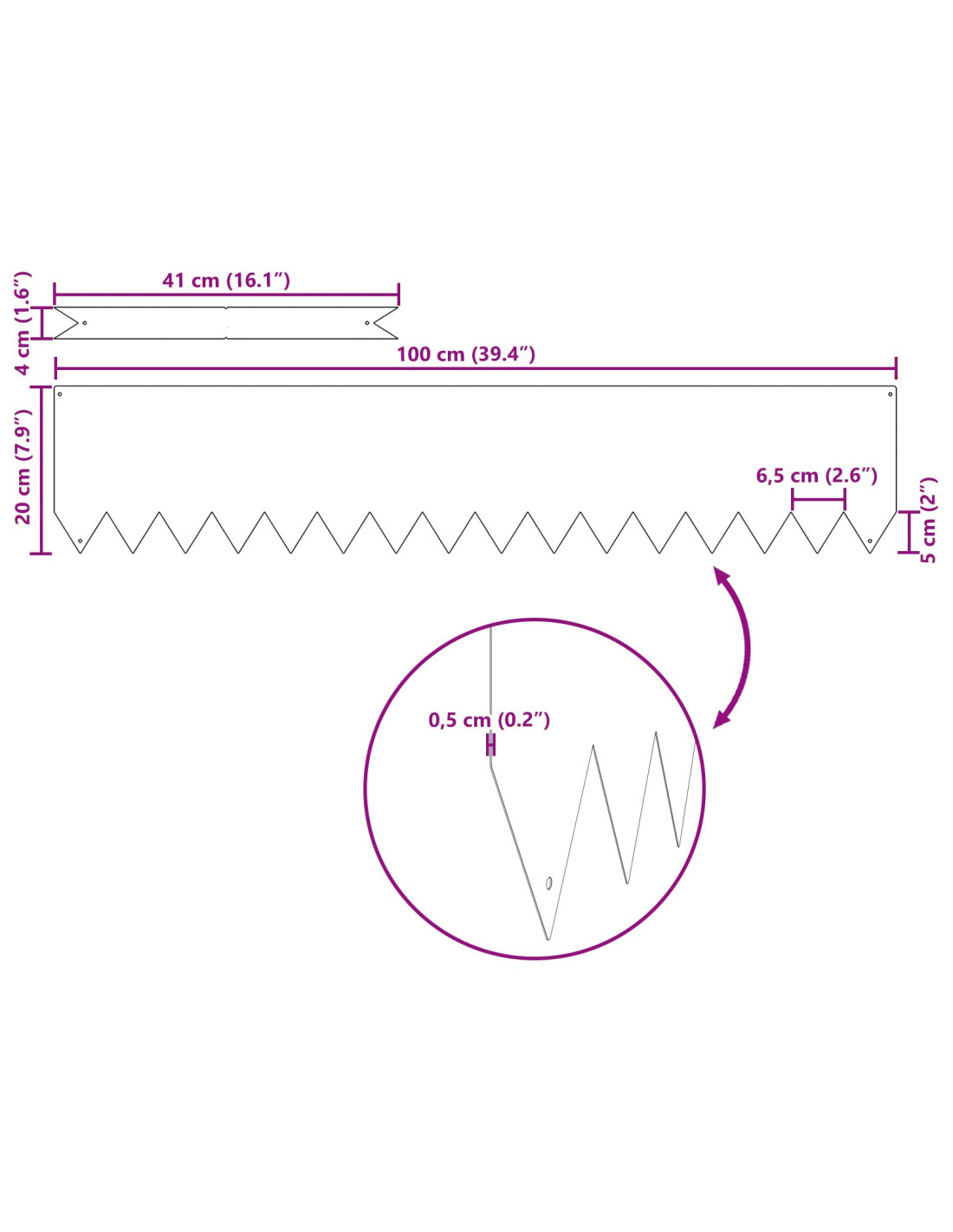 - Materiale robusto: Questo bordo è fatto di materiale resistente agli agenti atmosferici, così tiene duro contro vento e pioggia. È progettato per durare, mantenendo la sua forma e aspetto in tutte le stagioni.