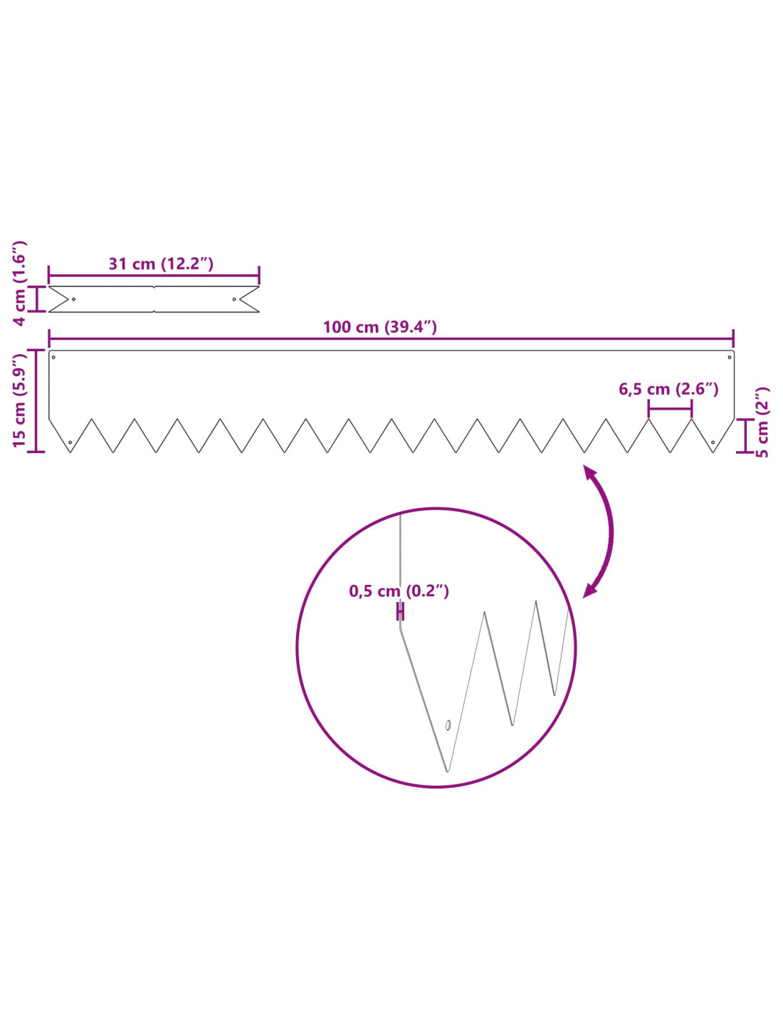 - Materiale robusto: Questo bordo è fatto di materiale resistente agli agenti atmosferici, così tiene duro contro vento e pioggia. È progettato per durare, mantenendo la sua forma e aspetto in tutte le stagioni.