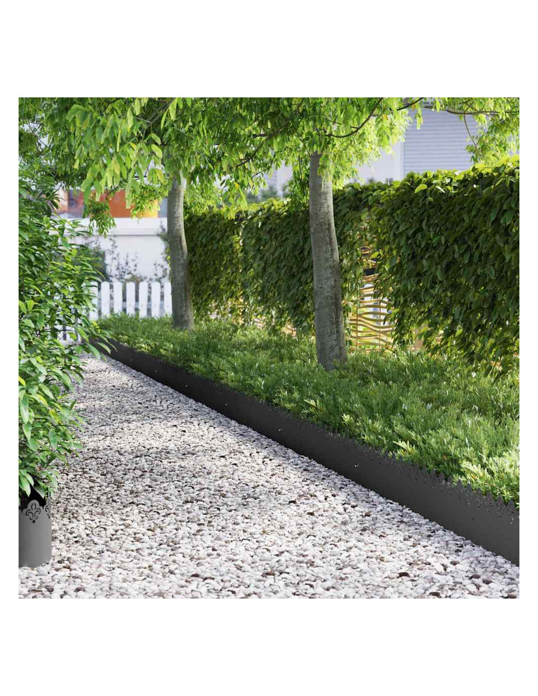 Questa elegante bordatura in metallo è una soluzione stilosa per definire letti di fiori e sentieri, adattandosi bene sia ai design tradizionali che a quelli moderni. Con le sue linee pulite e il look minimalista, migliora il paesaggio di giardini e terrazze, unendo forma e funzione. Crea uno spazio esterno ordinato e aggiungi un tocco architettonico alla decorazione del tuo giardino. Perfetta per chi ama la semplicità, questa bordatura combina fascino e praticità, offrendo un'atmosfera accogliente.