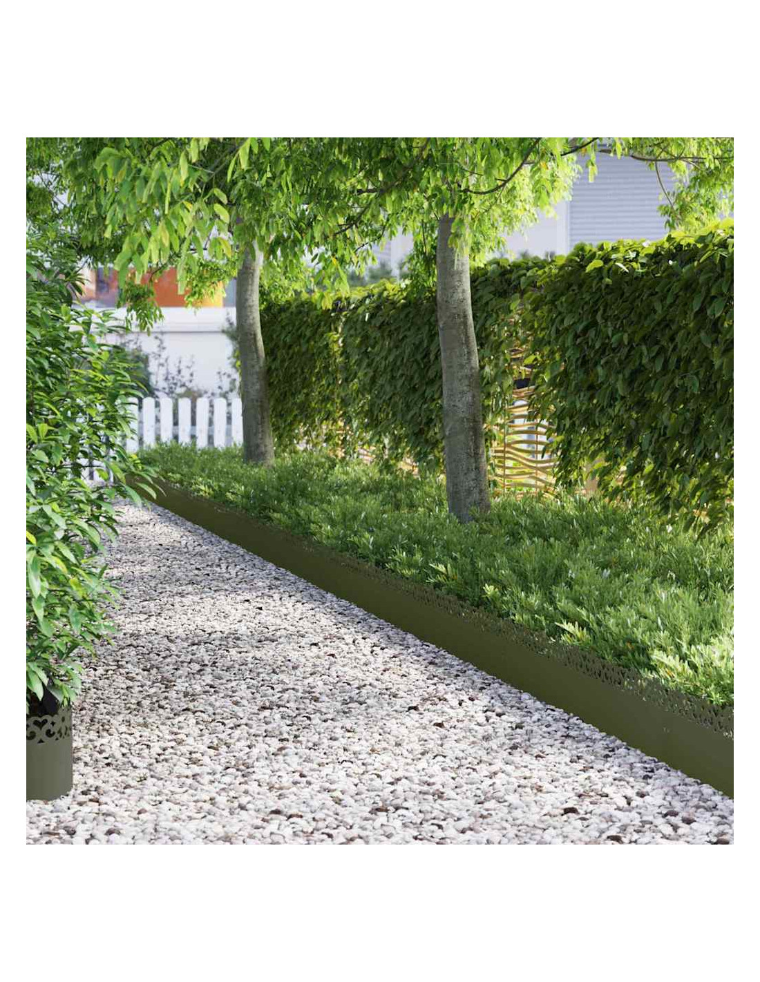 Questa elegante bordatura in metallo è una soluzione stilosa per definire letti di fiori e sentieri, adattandosi bene sia ai design tradizionali che a quelli moderni. Con le sue linee pulite e il look minimalista, migliora il paesaggio di giardini e terrazze, unendo forma e funzione. Crea uno spazio esterno ordinato e aggiungi un tocco architettonico alla decorazione del tuo giardino. Perfetta per chi ama la semplicità, questa bordatura combina fascino e praticità, offrendo un'atmosfera accogliente.