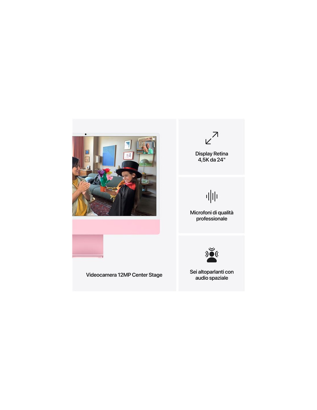 iMac 24" con display Retina 4,5K: Chip Apple M4 con CPU 8-core e GPU 8-core, 16GB, 256GB SSD - Rosa