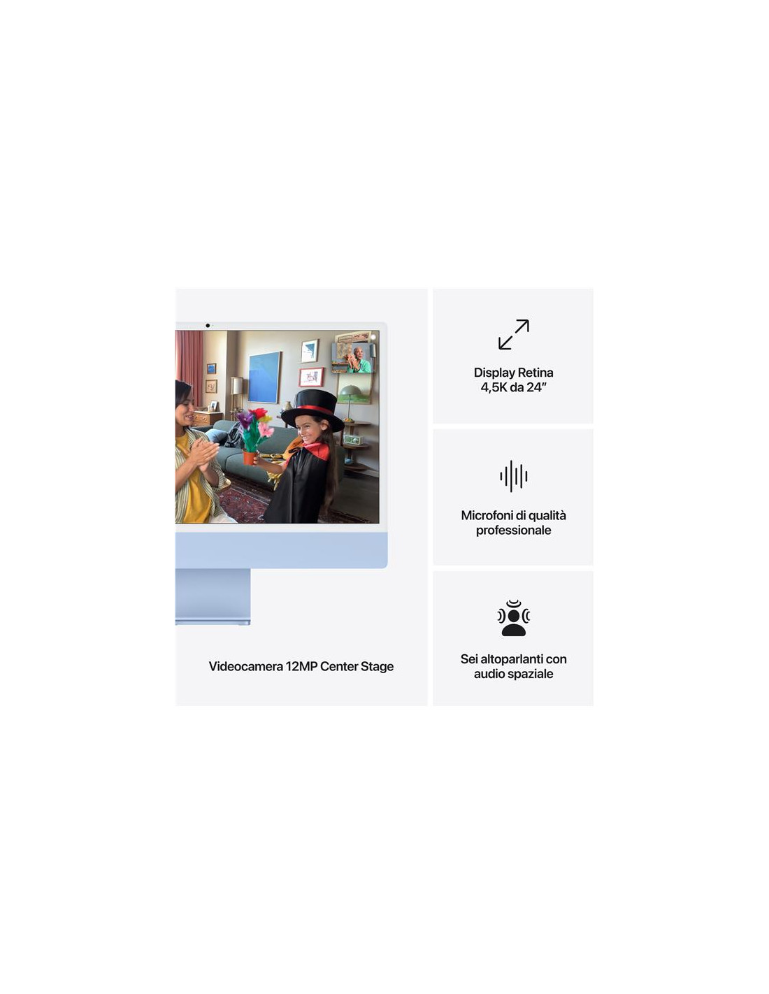 iMac 24" con display Retina 4,5K: Chip Apple M4 con CPU 8-core e GPU 8-core, 16GB, 256GB SSD - Blu
