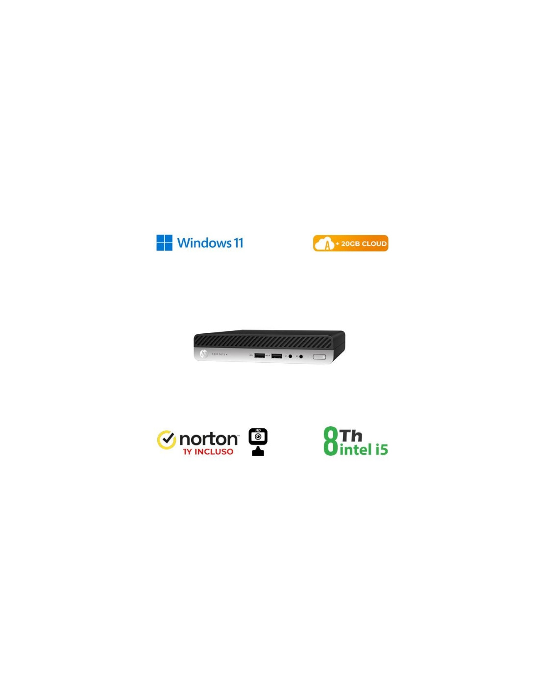 ULTRA MINI PC HP RINOVO REFURBISHED DM 400 G4 RN65522382 i5-8x00T 8GB SSD NEW 256GB W11P + CLOUD 20GB + NORTON