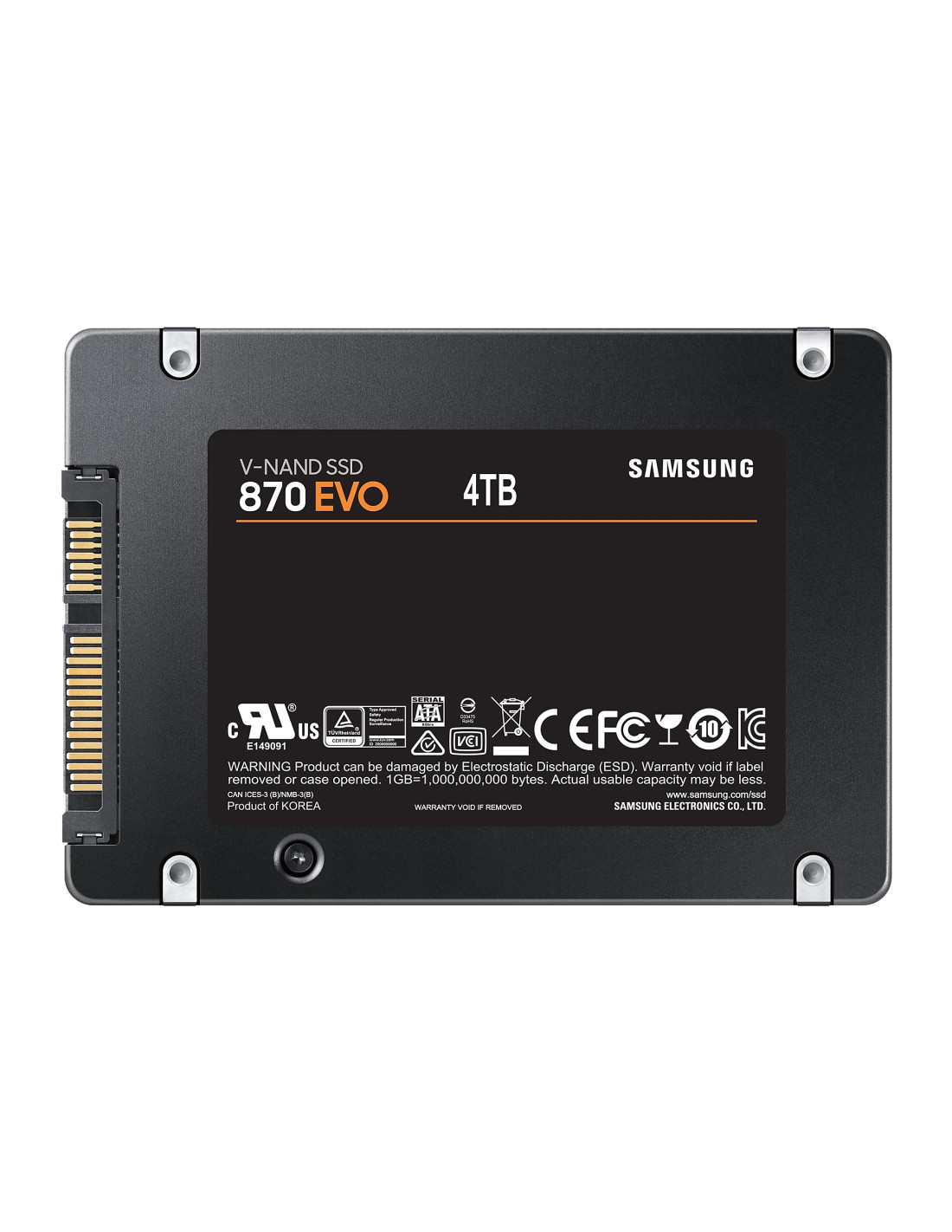Con una garanzia limitata di 5 anni o di 2.400 TBW, lSSD 870 EVO è conforme ai più elevati standard di affidabilità del settore, supportando qualsiasi attività dall'uso comune quotidiano allelaborazione di video in 8K. La memoria V-NAND di 6a generazione e il controller MKX assicurano unesperienza altamente stabile.