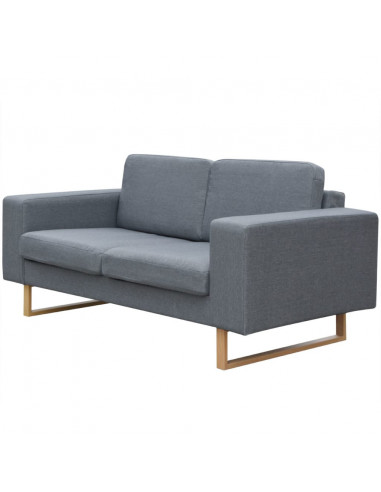 Il divano ha un'ampia seduta e cuscini riccamente imbottiti per donare il massimo comfort di utilizzo. E' rivestito in tessuto di alta qualità, resistente. Le federe sono facili da pulire in quanto smontabili e possono essere lavate in lavatrice. Il robusto telaio in legno e le gambe in ferro con finitura decorativa finto legno contribuiscono alla sua costruzione resistente.
