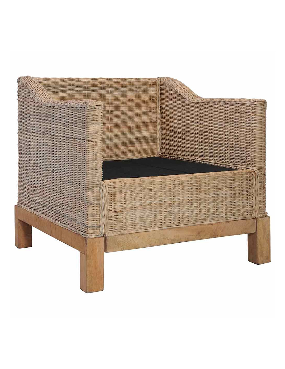 - Materiale: Rattan naturale + legno massello di mango + rivestimento in tessuto
