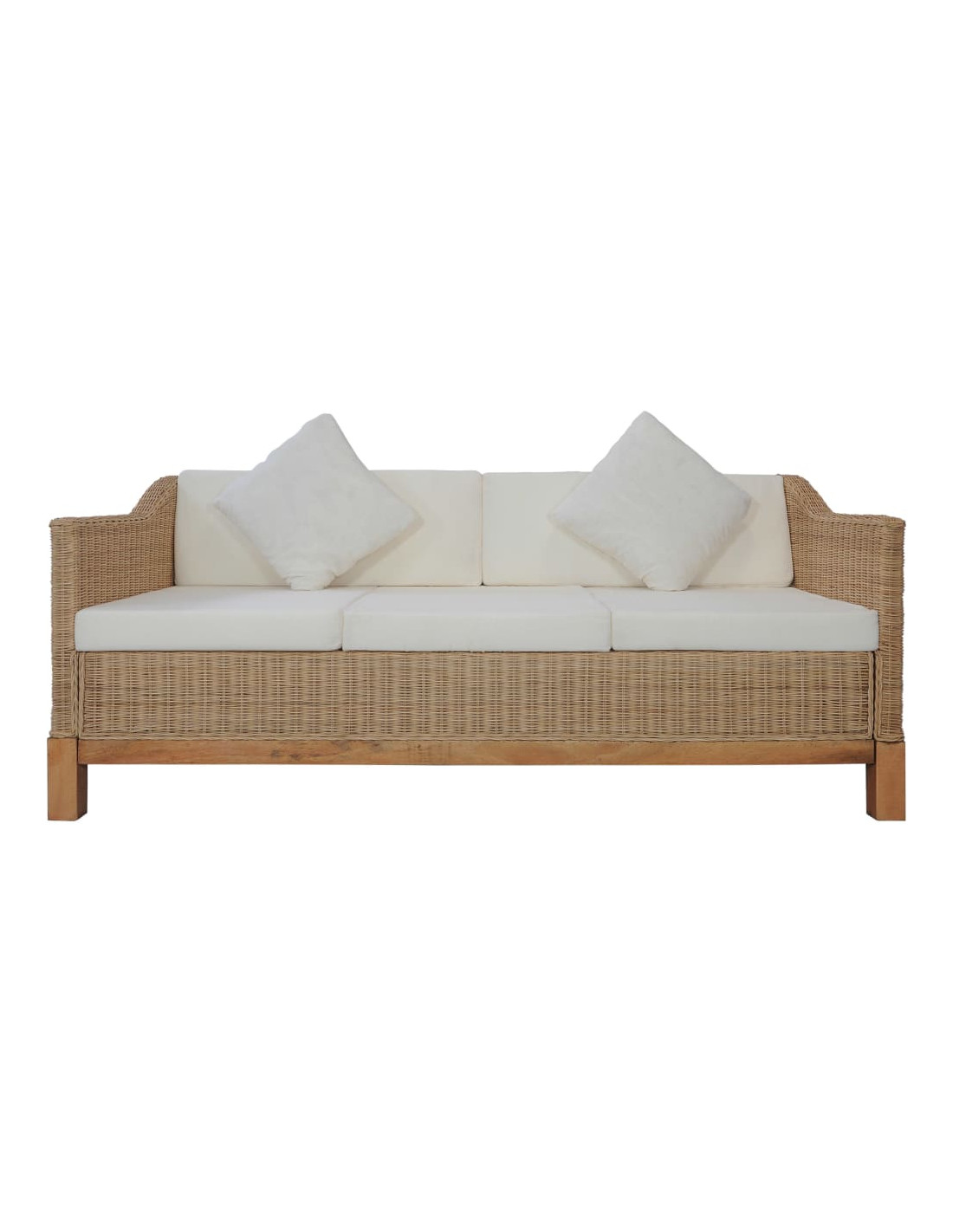 Grazie al materiale in vero rattan fitrit, il divano è facile da pulire, resistente e adatta all'uso quotidiano. È dotata di un robusto telaio in legno, altamente resistente e stabile. I cuscini di seduta e schienale di grosso spessore sono notevolmente conformabili e anche lavabili grazie al loro rivestimento sfoderabile.