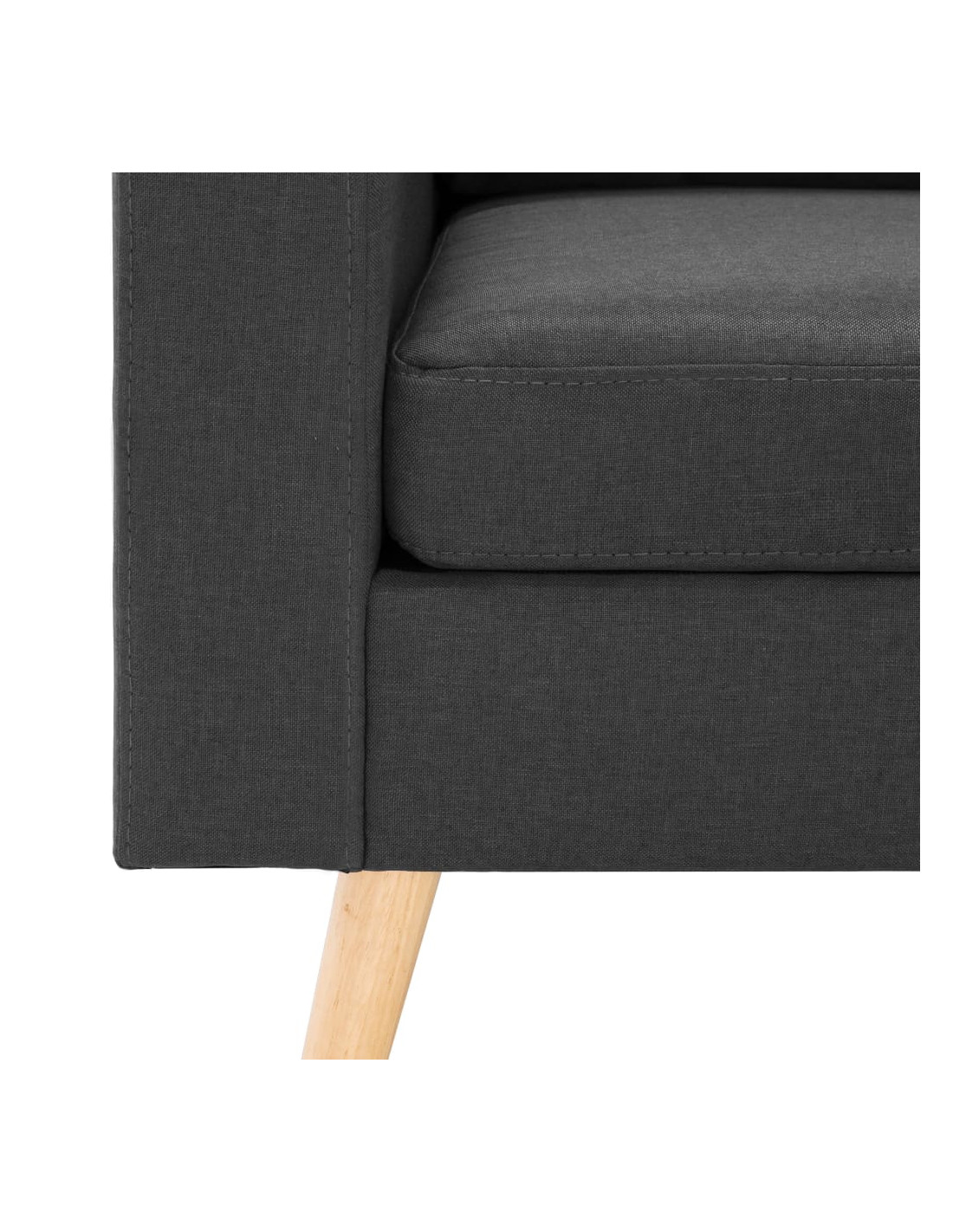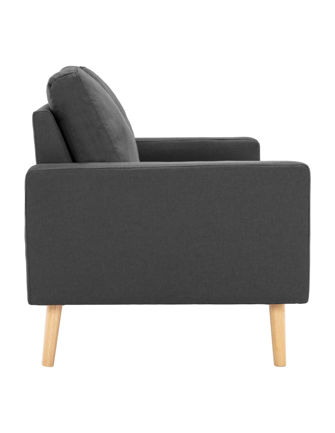 Questa poltrona è rivestita in tessuto morbido al tatto e dispone di cuscini imbottiti, che offrono uno spazio confortevole per rilassarsi. Il telaio in legno fornisce supporto e stabilità all'intera costruzione.