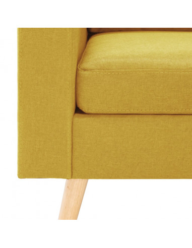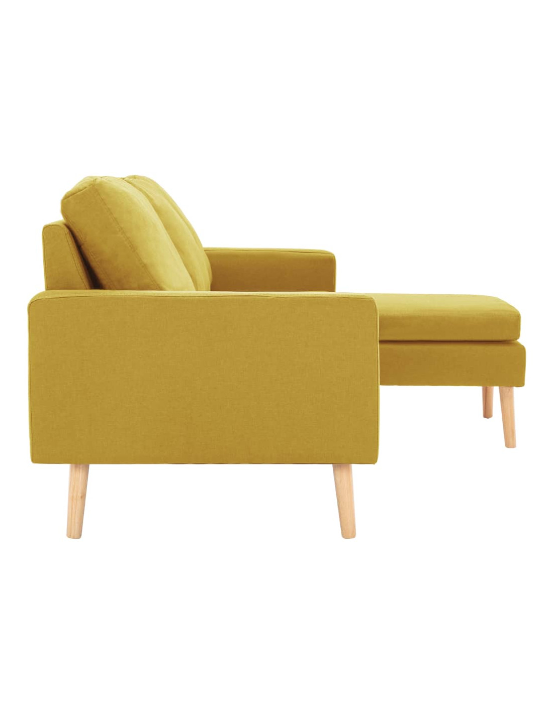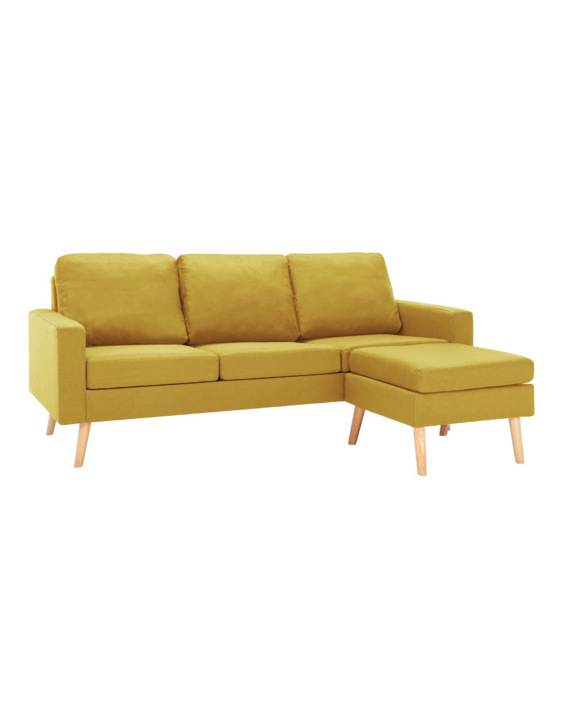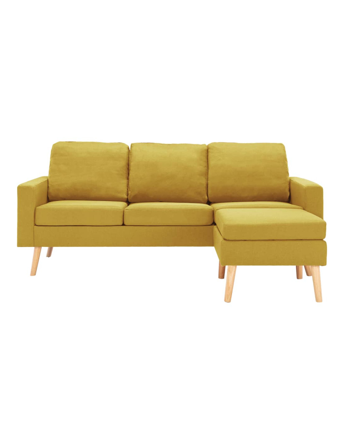 Questo divano è rivestito in tessuto morbido al tatto e dispone di cuscini imbottiti, che offrono uno spazio confortevole per rilassarsi. Il telaio in legno fornisce supporto e stabilità all'intera costruzione. Potete posizionare il poggiapiedi ovunque, per il vostro comfort e relax.