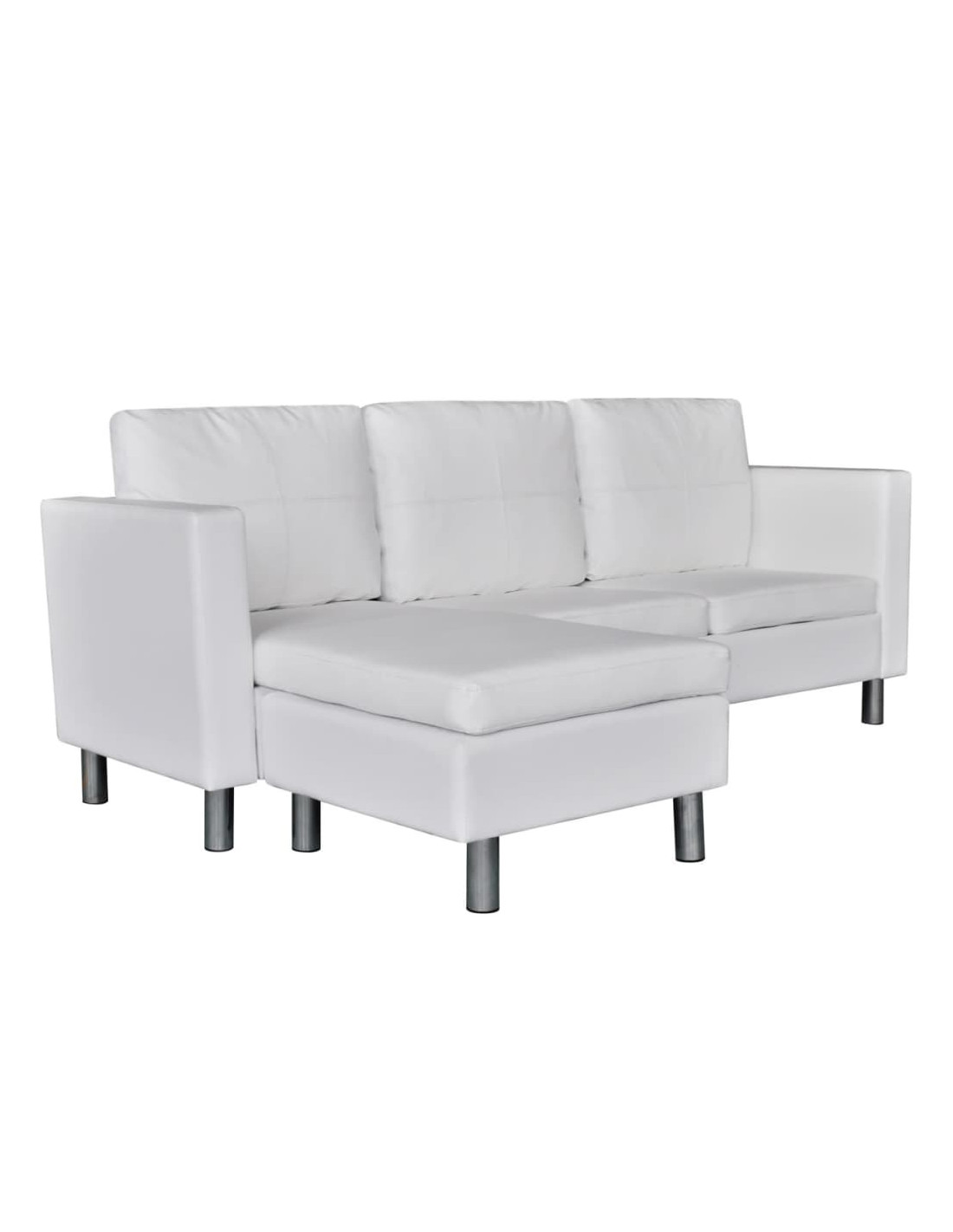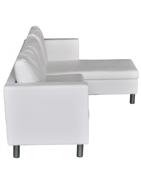 Questo divano dispone di ampi sedili e cuscini imbottiti per il massimo comfort di seduta. Il set di divani è rivestito in pelle artificiale lucida e resistente, che lo rende facile da pulire. Gli angoli sono robusti e hanno piedi in ferro cromato e resistenti. Questo versatile divano componibile include una sedia a sdraio che può essere posizionata su entrambi i lati del divano, rendendolo una scelta ideale per molte configurazioni nel soggiorno.