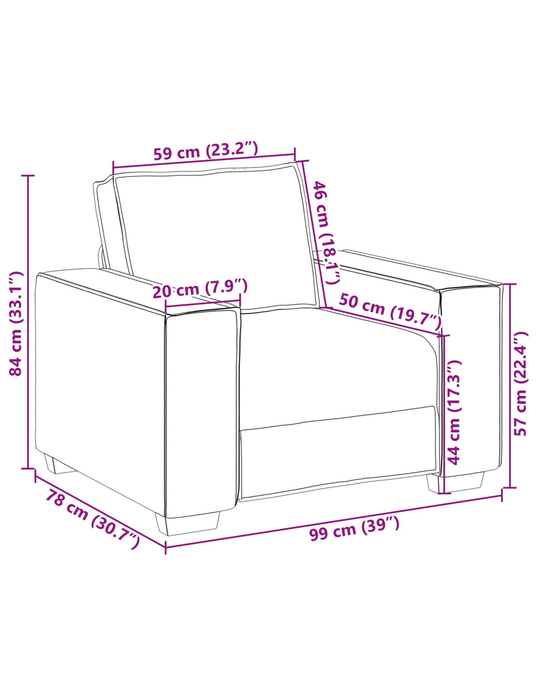 - 1 x Poltrona: 99 x 78 x 84 cm (LxPxA)