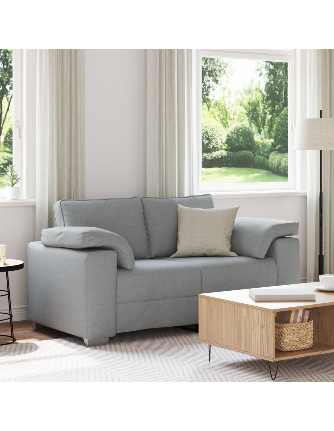 Questo divano in tessuto moderno dà un tocco contemporaneo al tuo soggiorno grazie alle sue linee pulite. I braccioli larghi sono comodi e pratici; possono reggere la tua tazza di tè o il tuo libro preferito. Con la sua forma rettangolare e un design curato, è il centro dell'attenzione in qualsiasi casa che ama la semplicità e la funzionalità. Perfetto per una giornata di relax o per accogliere ospiti, è un punto di riferimento per il comfort.