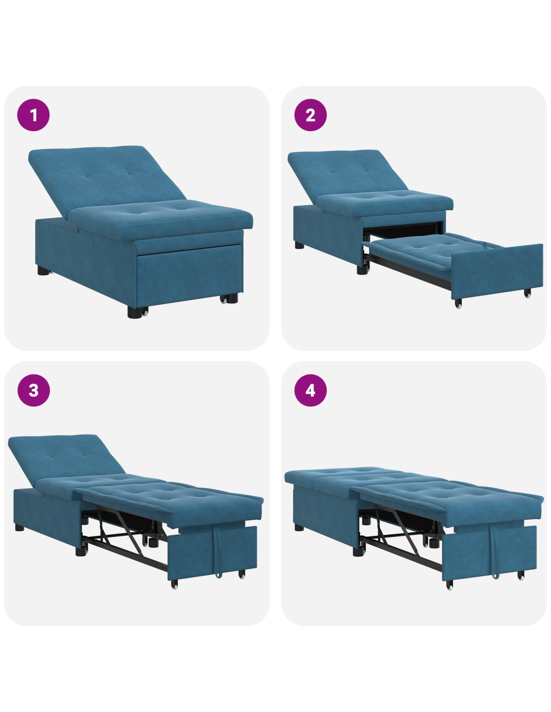 - Seduta e schienale in velluto Siediti o dormi nel massimo comfort grazie alla seduta e allo schienale in velluto, perfetti per il relax. Questo design a due funzioni assicura che il divano letti rimanga sempre accogliente, ideale per film o per accogliere amici.
