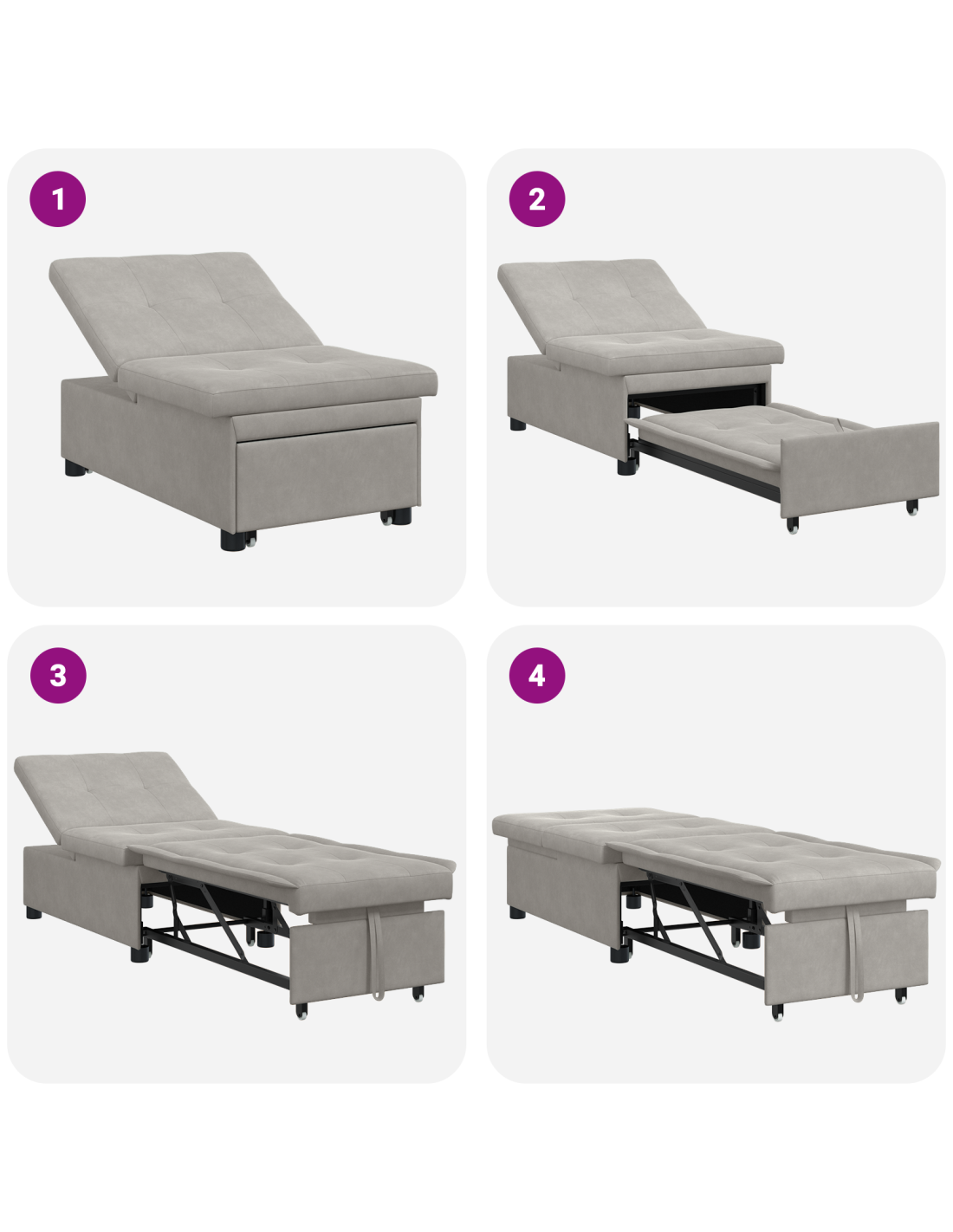 - Materiale in Microfibra Il divano letto è tutto in microfibra di alta qualità, morbida e resistente. Questo significa che è comodo e resiste all'uso quotidiano, perfetto per famiglie numerose. La sua superficie liscia lo rende anche bello da vedere, contribuendo a un'atmosfera accogliente nel soggiorno.