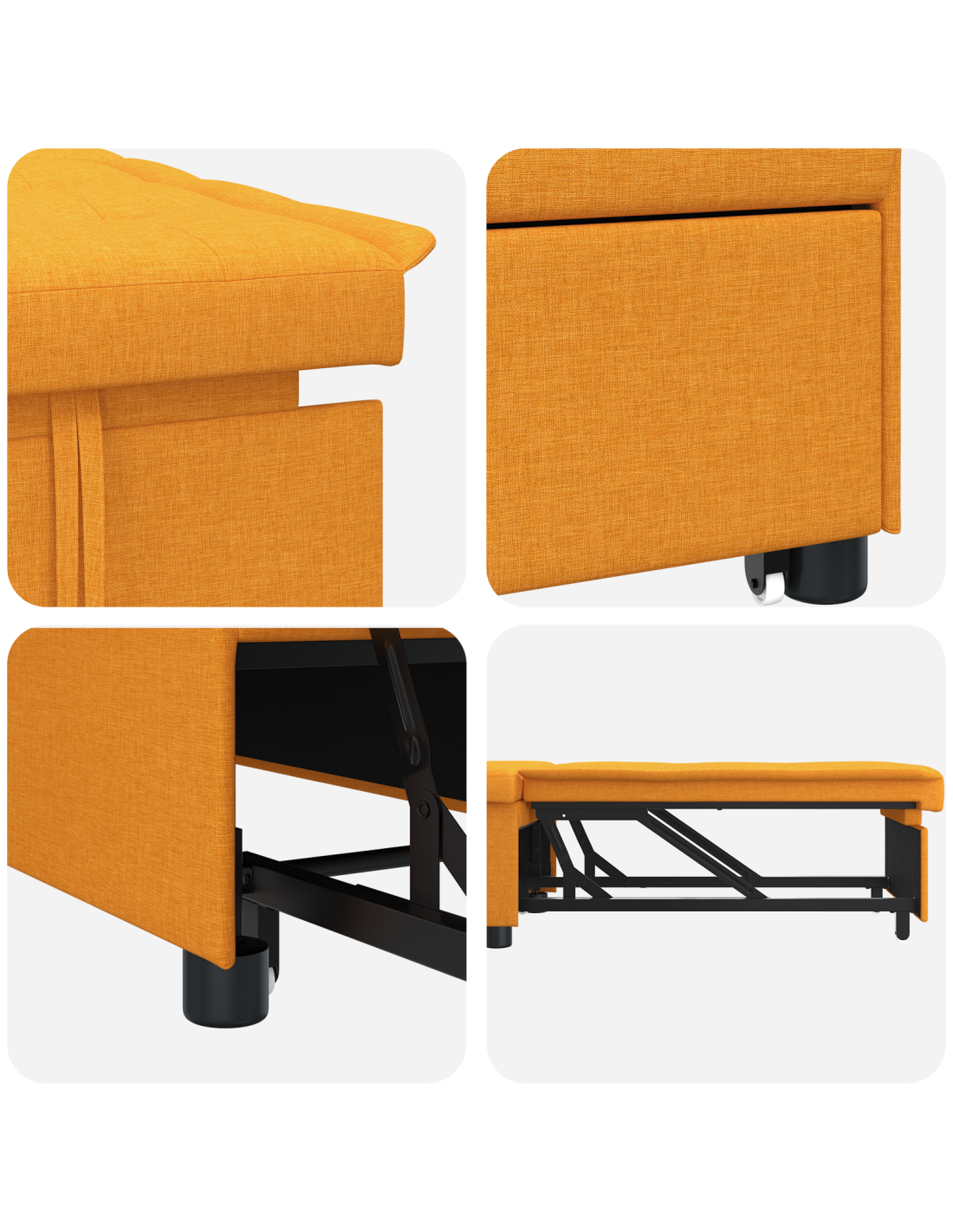 - Design flessibile: Questo divano letto cambia facilmente da comodo divano a un letto singolo o reclinabile. Ideale per gli ospiti o per rilassarsi, unisce comfort e funzionalità senza compromettere lo stile. La sua struttura compatta lo rende perfetto per appartamenti o stanze dove si deve ottimizzare lo spazio.