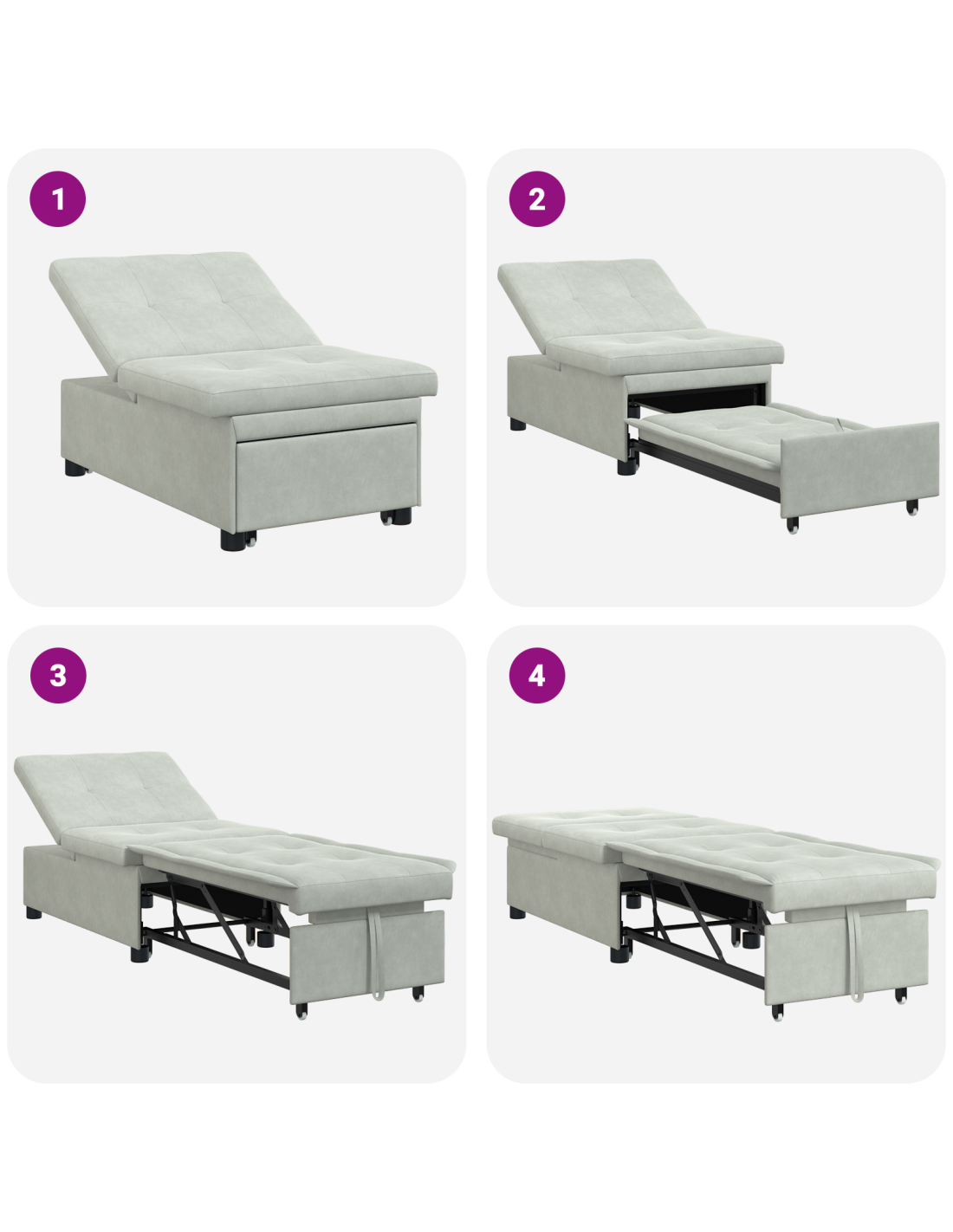 - Struttura in compensato robusta Costruito con una solida struttura in compensato, questo divano letto può affrontare l'uso quotidiano e garantisce stabilità. La scelta di questo materiale lo rende sicuro e moderno. Ogni parte è assemblata per essere funzionale, mantenendo un tocco di eleganza.