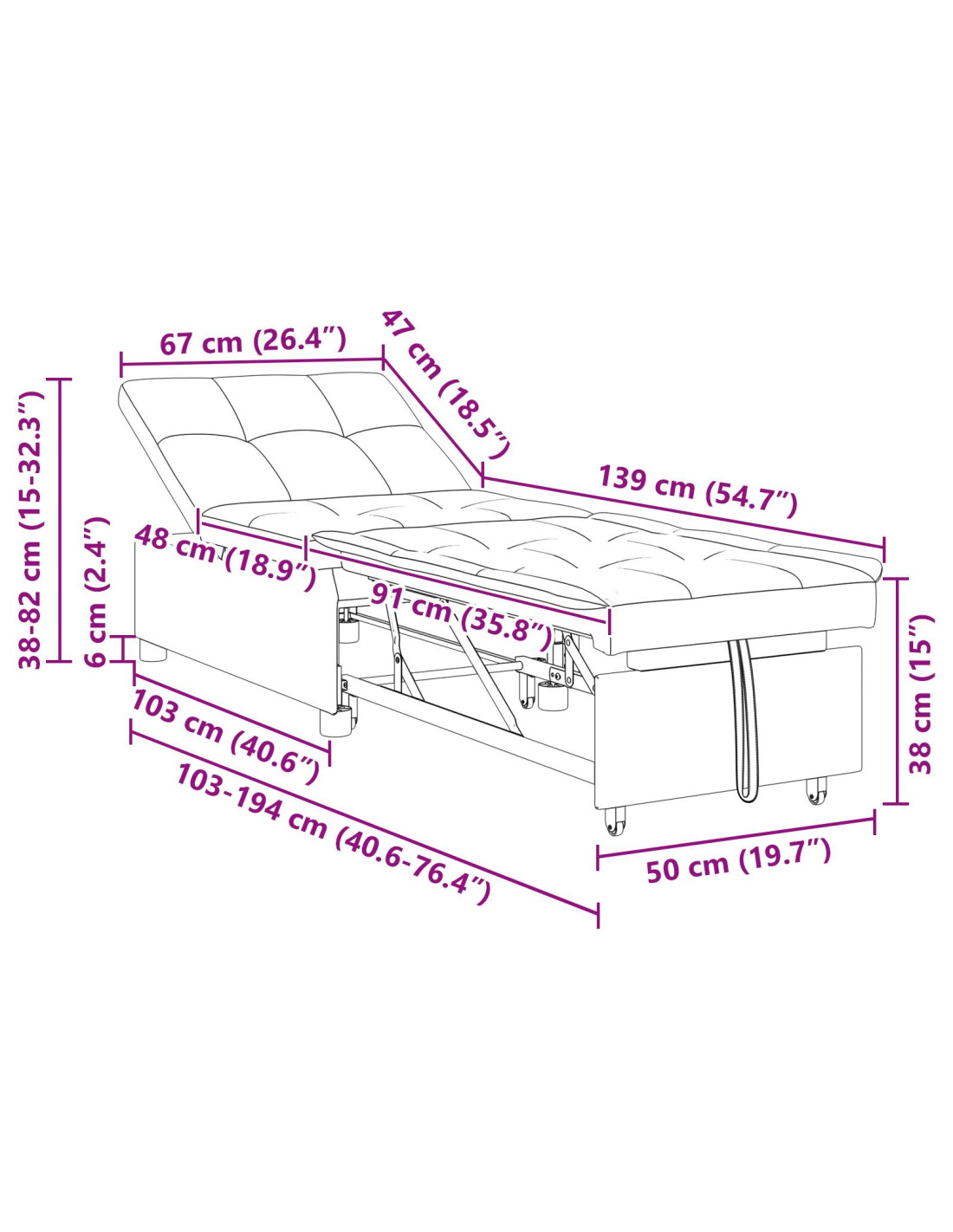 - Dimensioni complessive: 194 x 67 x 82 cm (L x P x A)