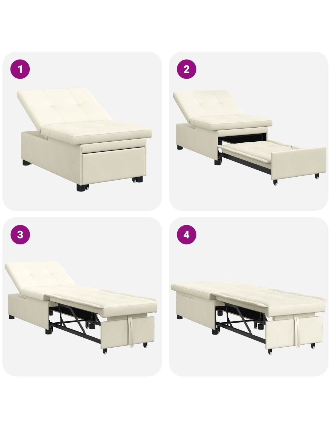- Seduta e schienale in velluto Siediti o dormi nel massimo comfort grazie alla seduta e allo schienale in velluto, perfetti per il relax. Questo design a due funzioni assicura che il divano letti rimanga sempre accogliente, ideale per film o per accogliere amici.