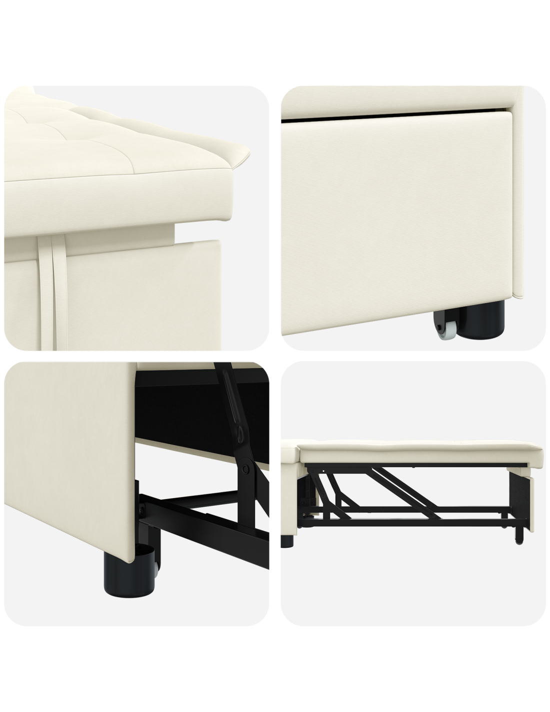 - Struttura in compensato robusta Costruito con una solida struttura in compensato, questo divano letto può affrontare l'uso quotidiano e garantisce stabilità. La scelta di questo materiale lo rende sicuro e moderno. Ogni parte è assemblata per essere funzionale, mantenendo un tocco di eleganza.