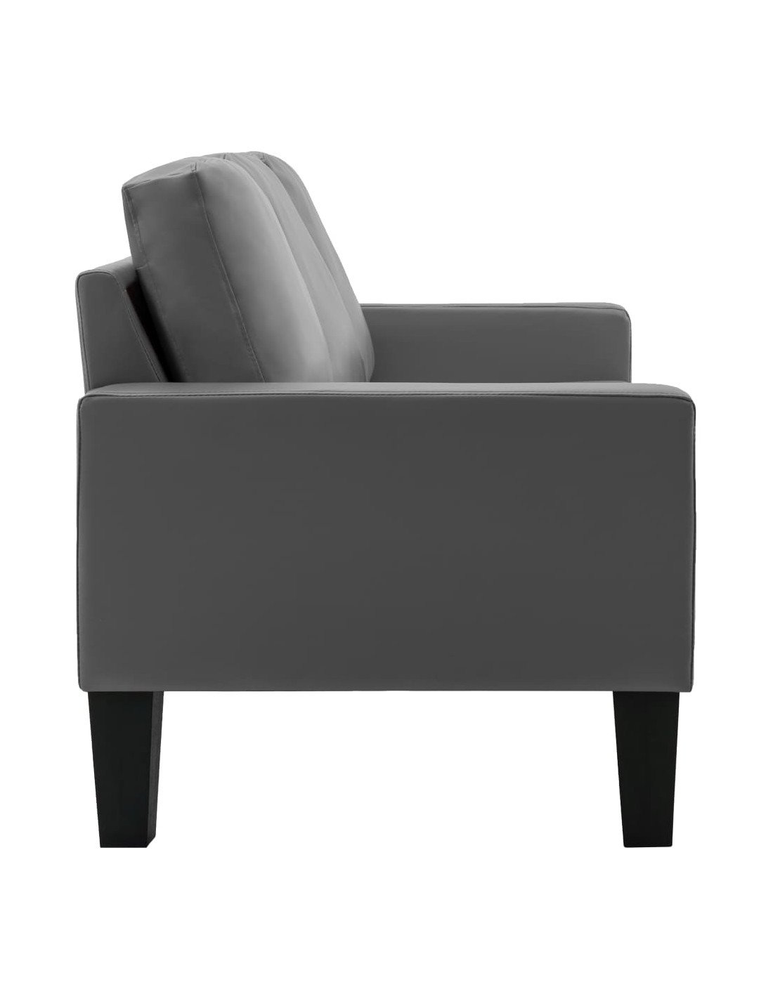 Questo divano è rivestito in similpelle facile da pulire e presenta cuscini imbottiti, che offrono uno spazio confortevole per rilassarsi. Il telaio in legno fornisce stabilità all'intera costruzione.