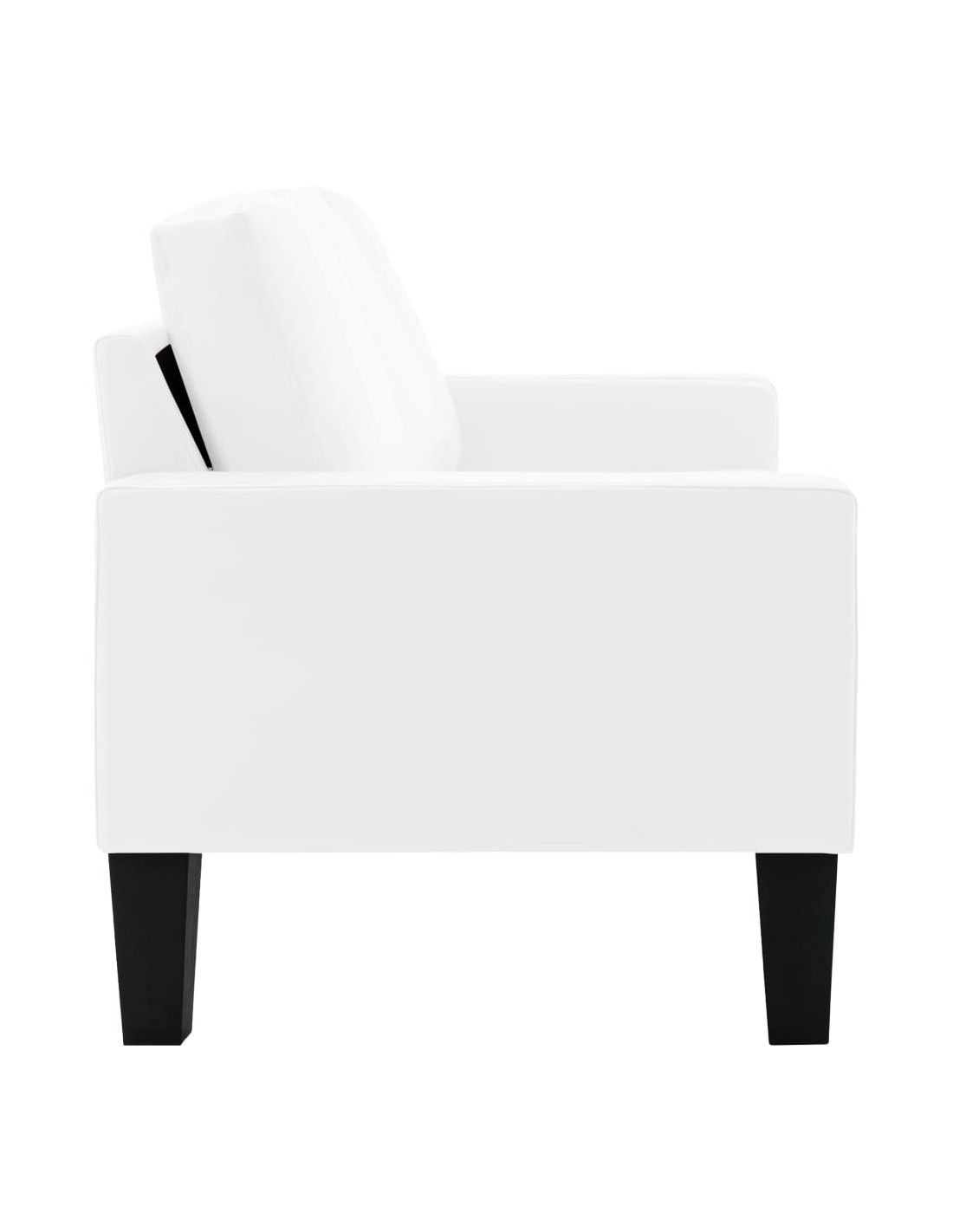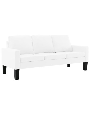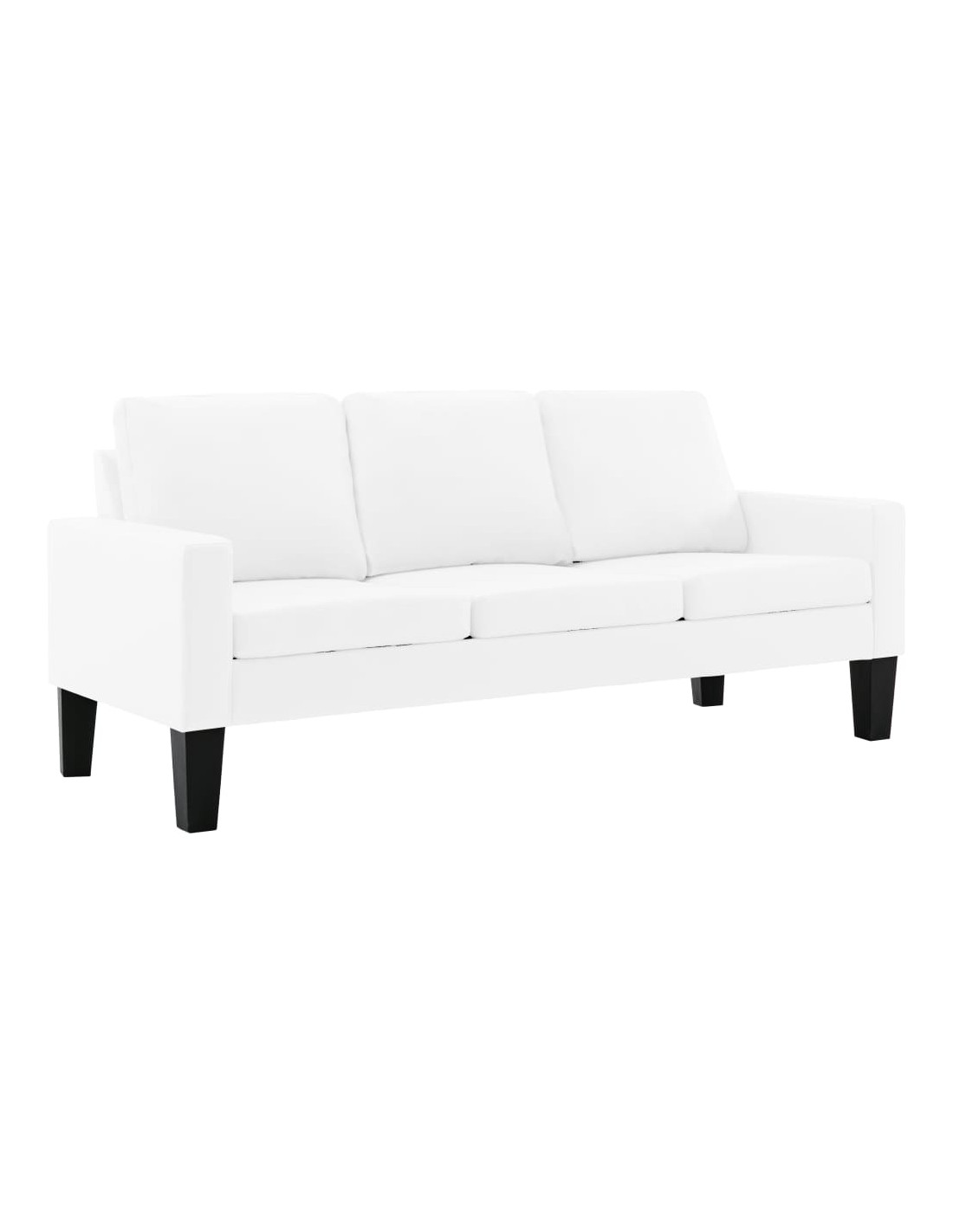Questo divano è rivestito in similpelle facile da pulire e presenta cuscini imbottiti, che offrono uno spazio confortevole per rilassarsi. Il telaio in legno fornisce stabilità all'intera costruzione.