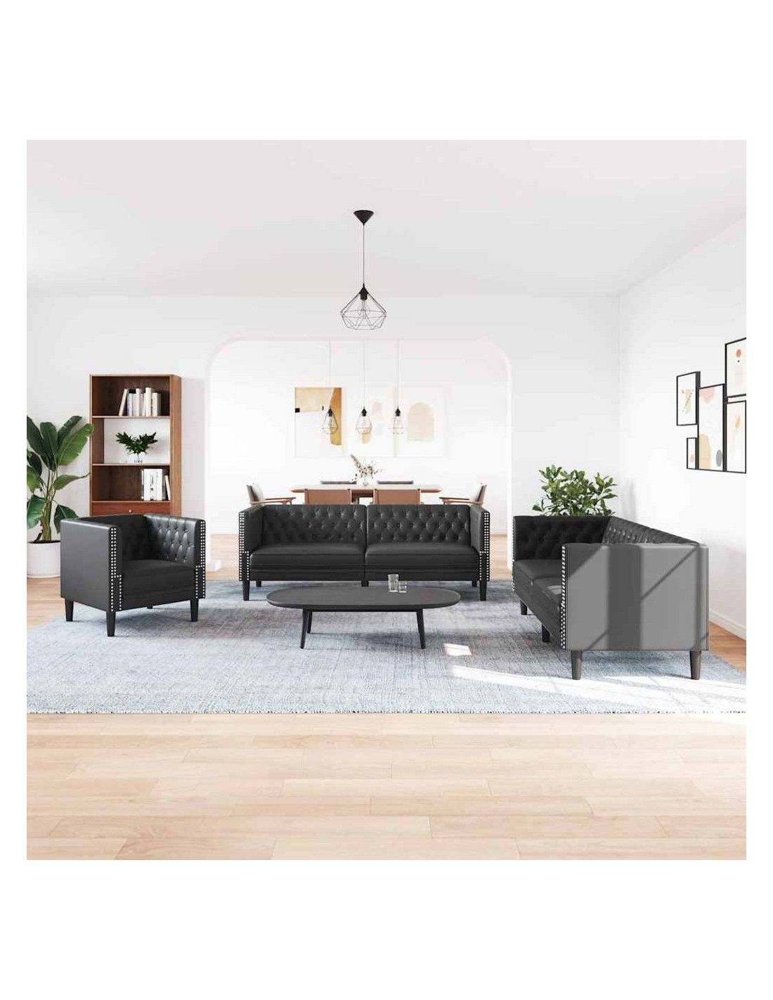 - Pelle Sintetica Traspirante: Questo set di divani è realizzato in pelle artificiale di alta qualità, quindi rimarrai comodo anche dopo ore di utilizzo. Facile da pulire e resistente, manterrà un aspetto fantastico per anni.