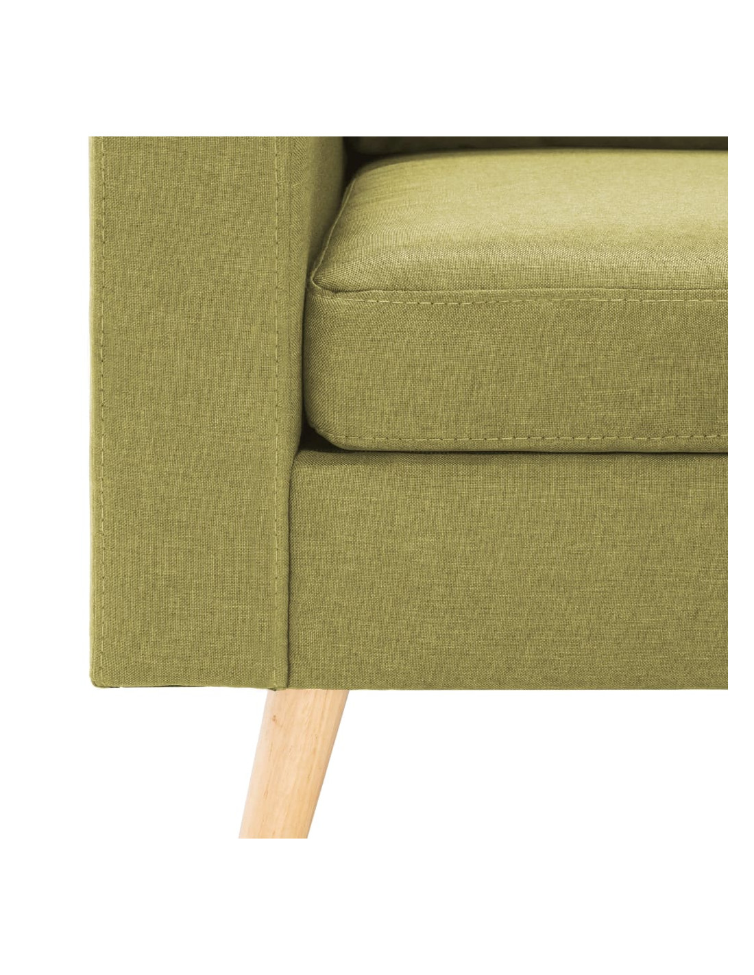 Questo divano è rivestito in tessuto morbido al tatto e dispone di cuscini imbottiti, che offrono uno spazio confortevole per rilassarsi. Il telaio in legno fornisce supporto e stabilità all'intera costruzione. Potete posizionare il poggiapiedi ovunque, per il vostro comfort e relax.