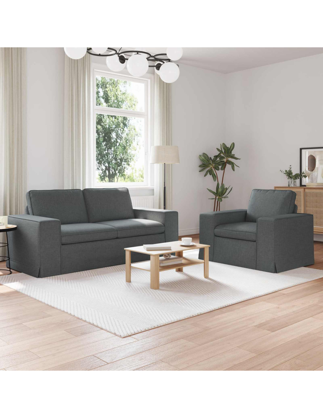 Questo set di divani moderni attira sicuramente l'attenzione. Combina un design contemporaneo con grande comfort. Che tu stia organizzando un incontro o godendoti una serata tranquilla, il suo design modulare ti permette di configurarlo come preferisci. Le sue linee eleganti e il look discreto migliorano l'atmosfera nel tuo soggiorno o camera da letto. La superficie liscia e il tessuto traspirante rendono il divano bello e piacevole al tatto, invitando al relax.