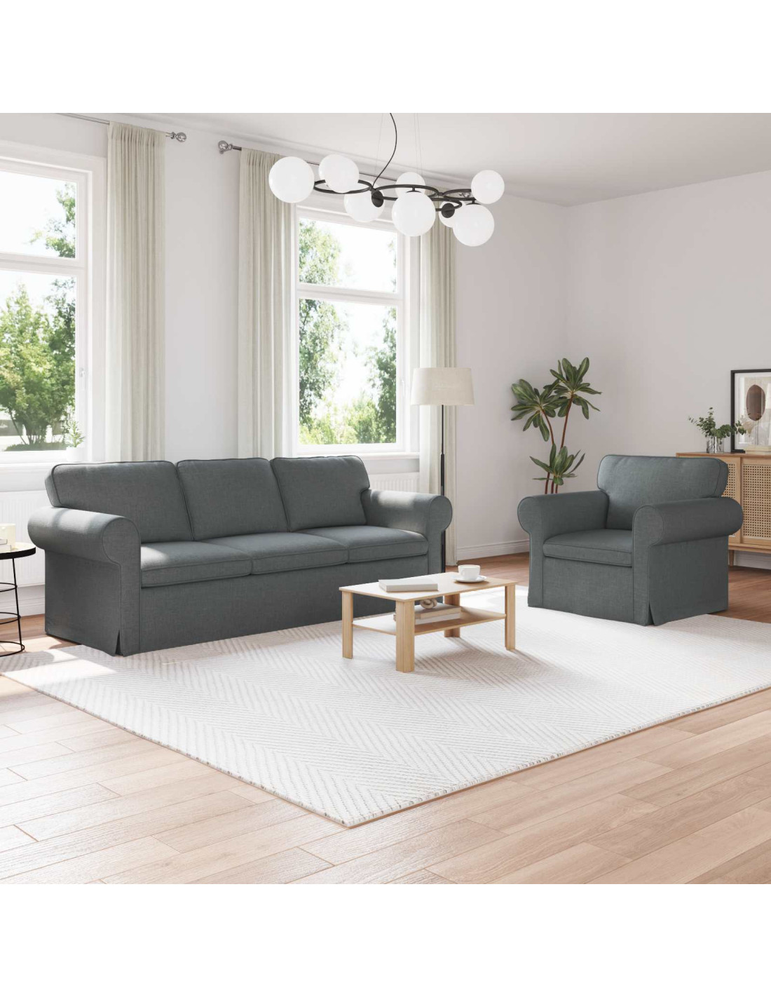 - Componenti Inclusi: I braccioli sono in legno ingegnerizzato, e le gambe a piedino stabilizzano il divano con un tocco tradizionale. L'imbottitura mista in schiuma e fibra offre un comfort eccezionale e resistenza.