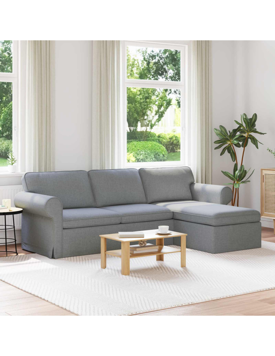 - Componenti Inclusi: Con braccioli in legno ingegnerizzato e gambe a cimabella in plastica, questo divano unisce stabilità e comfort. Le gambe offrono una base robusta e i braccioli forniscono un sostegno comodo. I cuscini in schiuma e fibra completano il tutto, regalando una sensazione accogliente.