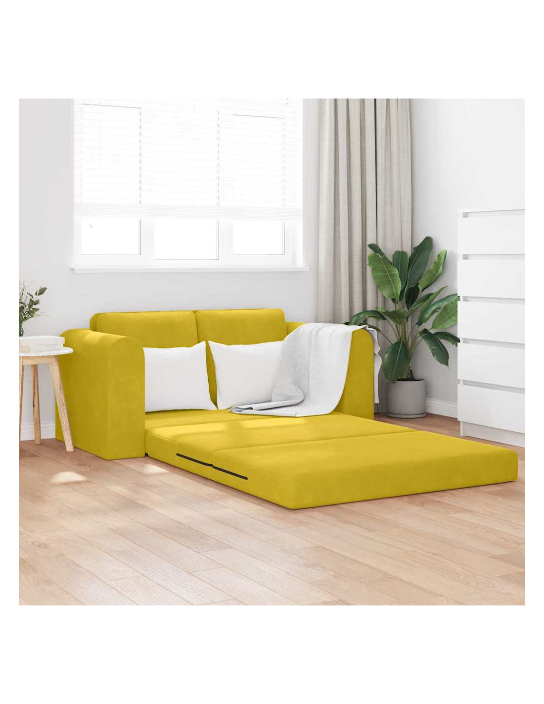 - Materiali: Realizzato con un morbido tessuto in velluto che offre una sensazione di lusso e comfort. Questo divano letto è progettato con particolare attenzione ai dettagli, unendo bellezza e praticità per uno spazio di vita elegante e duraturo.