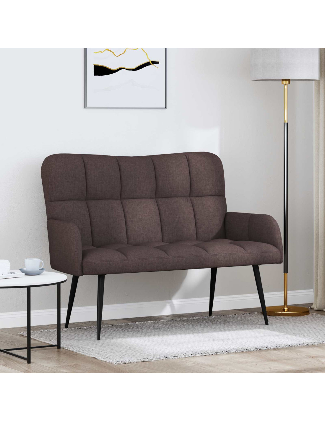 Questo divanetto Relax per due è l'ideale per ogni soggiorno o camera da letto. Con un design moderno e una seduta comoda, la sua texture liscia e l'aspetto elegante lo rendono perfetto per chi cerca di aggiungere un tocco contemporaneo senza rinunciare a comfort o spazio. Materiali: Realizzato con materiali di qualità in tessuto e legno, combina confort e durata. Il tessuto è morbido e accogliente, ideale per rilassarsi o intrattenere gli ospiti. Componenti inclusi: Include un supporto per la schiena rifinito e braccioli grigio chiaro in poliestere per maggiore comfort. Le robuste gambe metalliche e un telaio verniciato a polvere offrono stabilità al divano. Caratteristiche / Funzione / Design: Con una seduta comoda, il divano ha un profilo moderno che si adatta a tanti stili d'interni. Che sia in soggiorno o in camera da letto, il suo telaio robusto supporta l'uso quotidiano e arricchisce il tuo ambiente con eleganza. Usi consigliati: Perfetto per rilassarsi o chiacchierare, questo loveseat è pensato per utilizzo in ogni stagione. Il suo design compatto si adatta facilmente a spazi in soggiorno, camera da letto o zone condivise, unendo versatilità ed eleganza. Manutenzione: Per mantenerlo sempre in ordine, basta passare un panno asciutto. Questa semplice operazione allunga la vita del divano mantenendolo fresco e accogliente.