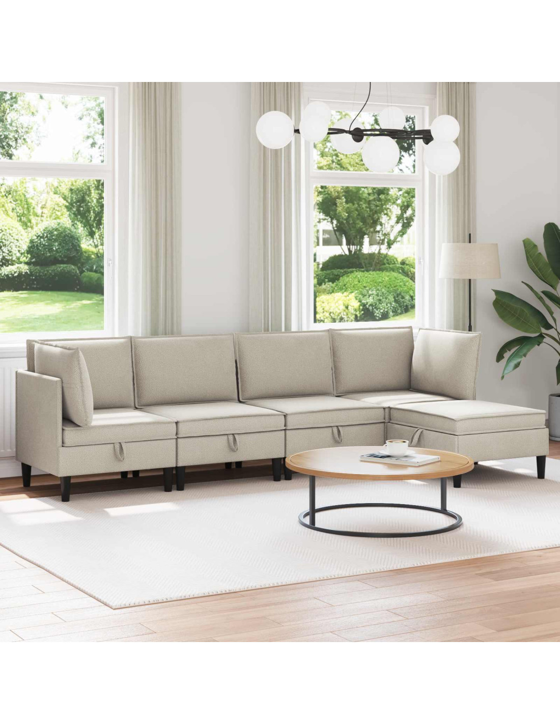 Il nostro set di mobili da soggiorno moderno mescola stile, comfort e durabilità, rendendolo un'aggiunta perfetta per ogni soggiorno. Con linee pulite e un design minimalista, crea uno spazio sereno e funzionale che si adatta a vari stili di interni. È il top per chi vuole eleganza e praticità in un unico pacchetto. Tessuto di alta qualità : Il nostro set da soggiorno è fatto in 100% poliestere, che è resistente e bello. Questo materiale non è solo attraente, ma è anche facile da mantenere, sopportando l'usura di tutti i giorni mentre decora il tuo spazio. Cuscini strutturati : Ogni pezzo include cuscini rigidi con chiusura a mascherina, che non solo offrono comfort, ma anche un aspetto ordinato. Questi cuscini garantiscono un supporto fantastico per sedersi comodamente, anche per lunghi periodi. Struttura robusta : Un telaio in compensato forte forma la base di questo set di mobili. Conosciuto per la sua resistenza, il compensato assicura che i mobili restino solidi e che durino nel tempo, creando un sedile affidabile per te e i tuoi ospiti. Design moderno delle gambe : I posti a sedere presentano gambe a palo in plastica marrone, che danno un tocco moderno mantenendo una buona solidità. Questo design valorizza lo stile semplice ma raffinato dei mobili, garantendo stabilità su vari tipi di pavimento. Cura semplice : Per mantenere i mobili sempre al top, basta spolverarli con un panno morbido e asciutto. Evita prodotti chimici aggressivi per preservare il tessuto e assicurare un aspetto sempre pulito e duraturo.