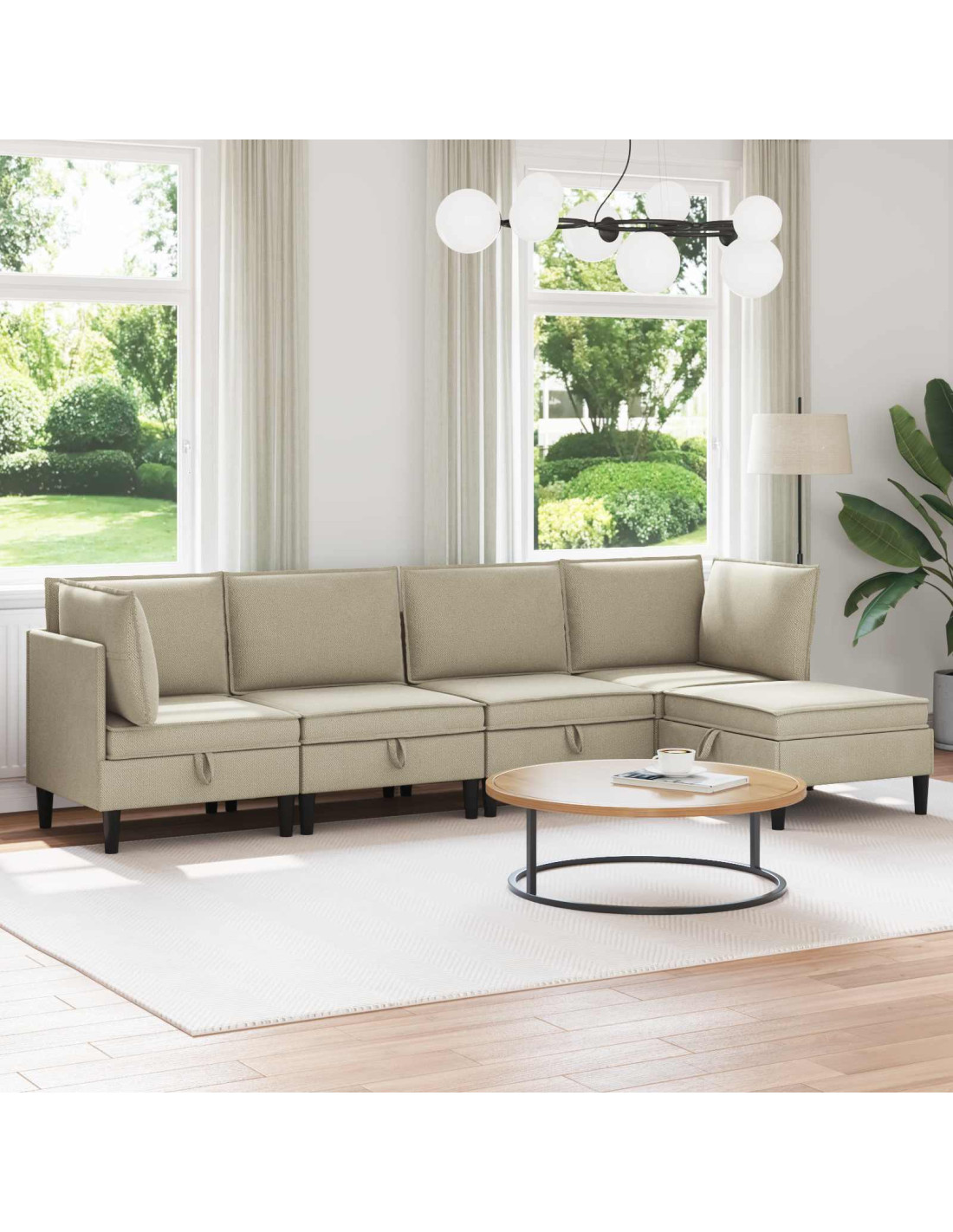 Il nostro set di mobili da soggiorno moderno mescola stile, comfort e durabilità, rendendolo un'aggiunta perfetta per ogni soggiorno. Con linee pulite e un design minimalista, crea uno spazio sereno e funzionale che si adatta a vari stili di interni. È il top per chi vuole eleganza e praticità in un unico pacchetto. Tessuto di alta qualità : Il nostro set da soggiorno è fatto in 100% poliestere, che è resistente e bello. Questo materiale non è solo attraente, ma è anche facile da mantenere, sopportando l'usura di tutti i giorni mentre decora il tuo spazio. Cuscini strutturati : Ogni pezzo include cuscini rigidi con chiusura a mascherina, che non solo offrono comfort, ma anche un aspetto ordinato. Questi cuscini garantiscono un supporto fantastico per sedersi comodamente, anche per lunghi periodi. Struttura robusta : Un telaio in compensato forte forma la base di questo set di mobili. Conosciuto per la sua resistenza, il compensato assicura che i mobili restino solidi e che durino nel tempo, creando un sedile affidabile per te e i tuoi ospiti. Design moderno delle gambe : I posti a sedere presentano gambe a palo in plastica marrone, che danno un tocco moderno mantenendo una buona solidità. Questo design valorizza lo stile semplice ma raffinato dei mobili, garantendo stabilità su vari tipi di pavimento. Cura semplice : Per mantenere i mobili sempre al top, basta spolverarli con un panno morbido e asciutto. Evita prodotti chimici aggressivi per preservare il tessuto e assicurare un aspetto sempre pulito e duraturo.