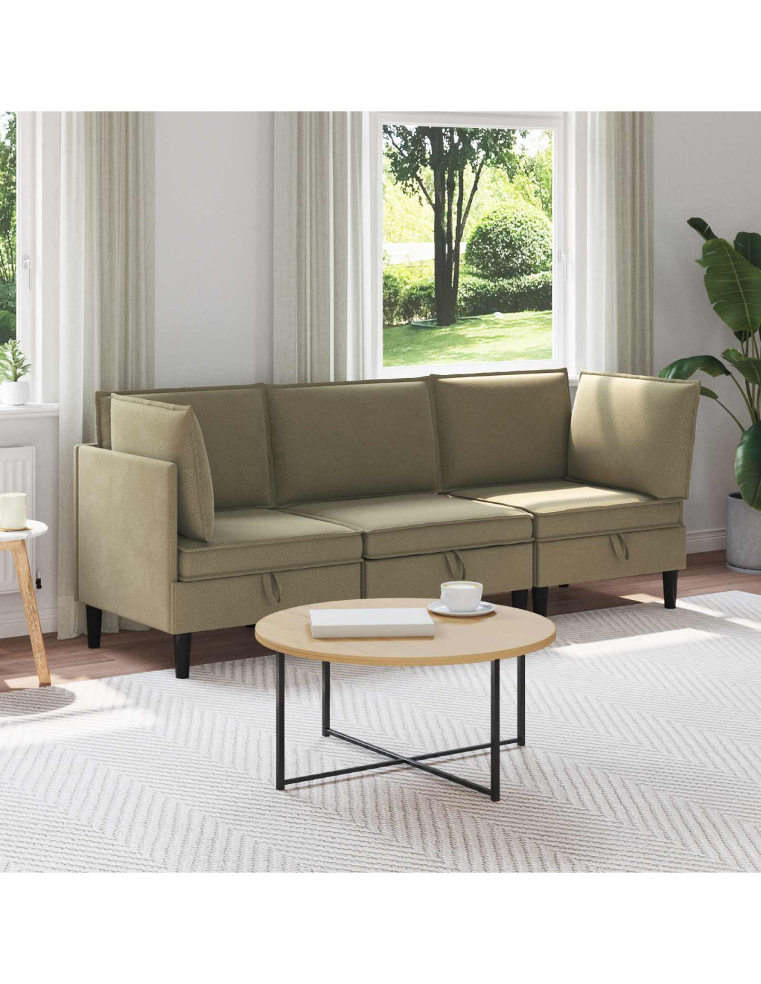 Il nostro set di mobili da soggiorno moderno mescola stile, comfort e durabilità, rendendolo un'aggiunta perfetta per ogni soggiorno. Con linee pulite e un design minimalista, crea uno spazio sereno e funzionale che si adatta a vari stili di interni. È il top per chi vuole eleganza e praticità in un unico pacchetto. Tessuto di alta qualità : Il nostro set da soggiorno è fatto in 100% poliestere, che è resistente e bello. Questo materiale non è solo attraente, ma è anche facile da mantenere, sopportando l'usura di tutti i giorni mentre decora il tuo spazio. Cuscini strutturati : Ogni pezzo include cuscini rigidi con chiusura a mascherina, che non solo offrono comfort, ma anche un aspetto ordinato. Questi cuscini garantiscono un supporto fantastico per sedersi comodamente, anche per lunghi periodi. Struttura robusta : Un telaio in compensato forte forma la base di questo set di mobili. Conosciuto per la sua resistenza, il compensato assicura che i mobili restino solidi e che durino nel tempo, creando un sedile affidabile per te e i tuoi ospiti. Design moderno delle gambe : I posti a sedere presentano gambe a palo in plastica marrone, che danno un tocco moderno mantenendo una buona solidità. Questo design valorizza lo stile semplice ma raffinato dei mobili, garantendo stabilità su vari tipi di pavimento. Cura semplice : Per mantenere i mobili sempre al top, basta spolverarli con un panno morbido e asciutto. Evita prodotti chimici aggressivi per preservare il tessuto e assicurare un aspetto sempre pulito e duraturo.