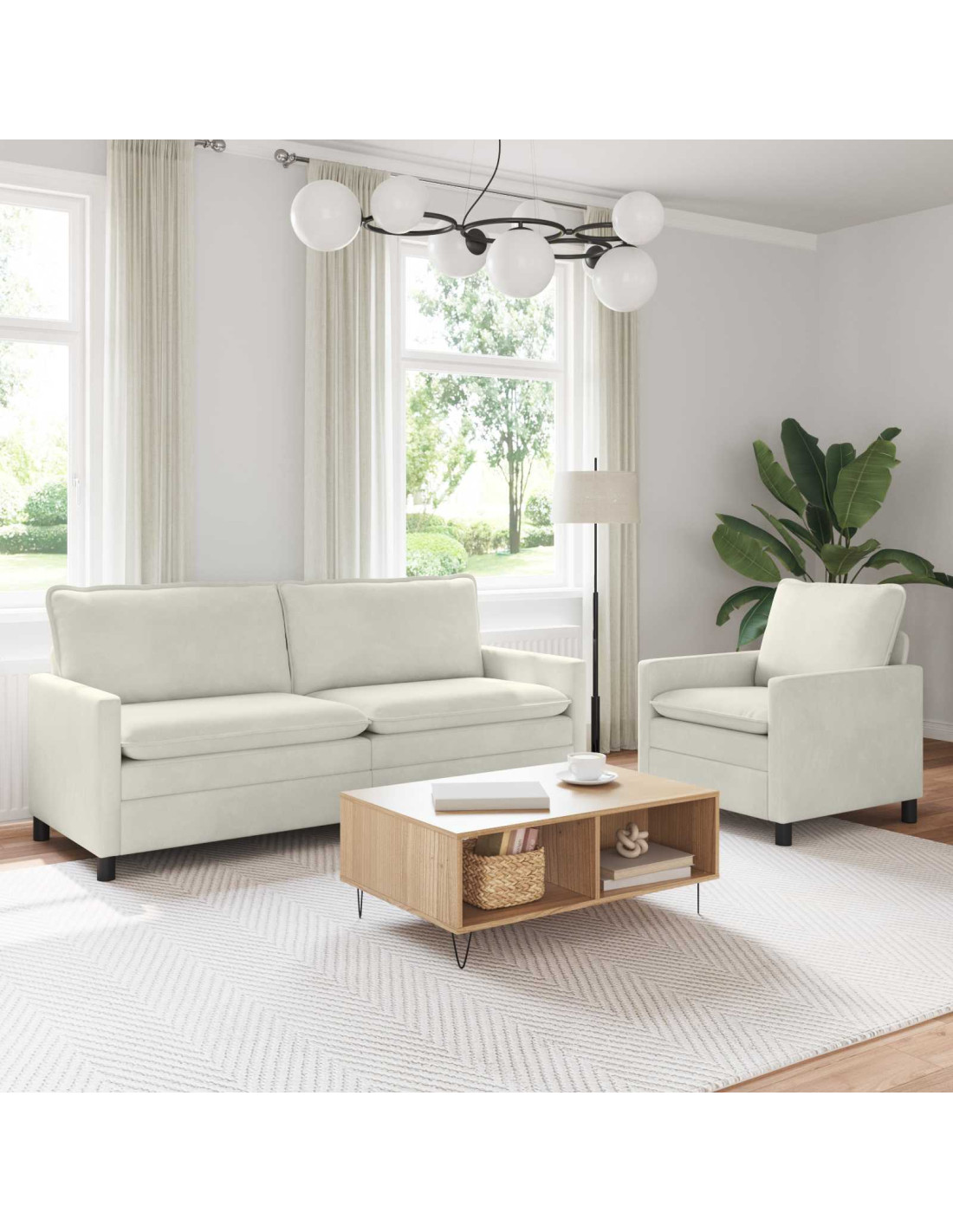 Il set di divani moderni mescola una vibe contemporanea con la praticità del comfort per la vita di tutti i giorni. La tappezzeria in velluto aggiunge un tocco elegante, mentre il profilo lineare mantiene tutto in ordine. I cuscini a doppio strato ti invitano a sederti e chiacchierare, perfetti per momenti informali o una lettura tranquilla. Le dimensioni ben studiate rendono facile integrarlo ovunque, sia in appartamenti piccoli che in spazi ampi. Costruzione robusta: Con la sua struttura in metallo super resistente, questo divano è costruito per durare. Le giunzioni solide offrono stabilità, perfetta per un uso quotidiano e una seduta sempre comoda. Seduta confortevole: Il design a cuscino a doppio strato unisce morbidezza e supporto, così puoi goderti il massimo del comfort senza rinunciare alla stabilità. Questi strati lavorano insieme per ridurre la pressione e mantenere la forma del sedile. Design moderno: Le linee pulite e il velluto morbido creano un look contemporaneo che si abbina a qualsiasi arredamento. La silhouette snella aiuta a mantenere l'ambiente tranquillo e curato. Uso versatile: Perfetto per gli spazi flessibili, questo set di divani si adatta ai salotti e alle aree per gli ospiti. Adatto a qualsiasi situazione, dalla chiacchierata con amici alla serata film. Manutenzione semplice: I rivestimenti rimovibili rendono la pulizia un gioco da ragazzi, e una manutenzione di routine è facile con un panno morbido. I consigli per la cura d'uso interno aiutano a mantenere il set sempre fresco con poco impegno.