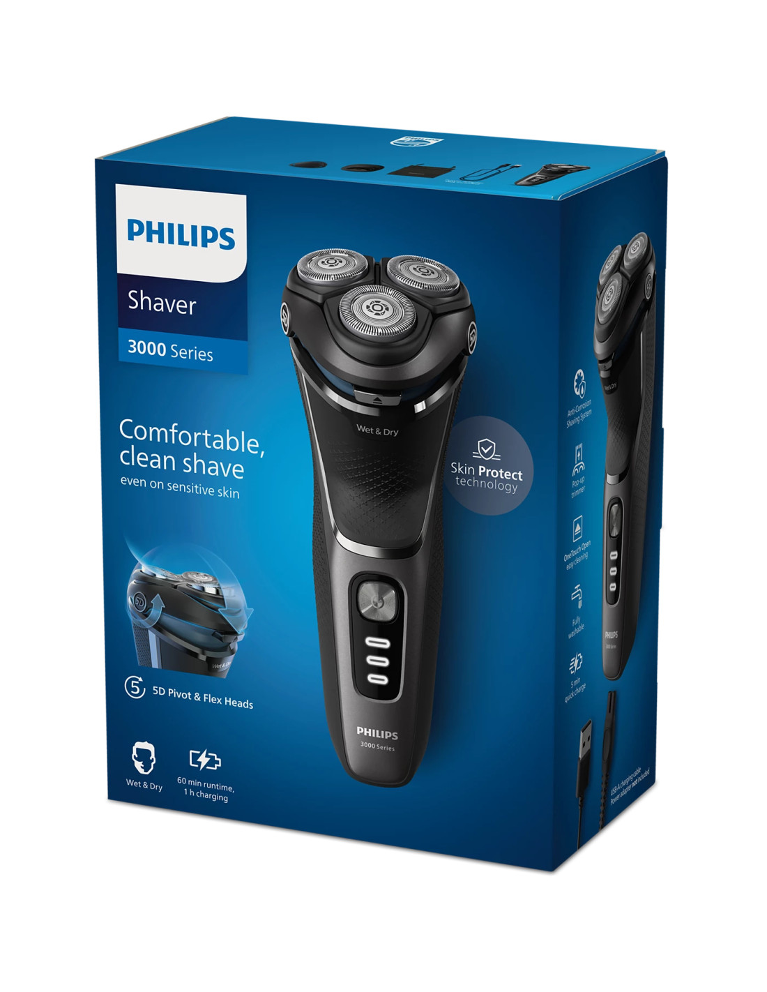 Il rasoio elettrico Wet & Dry Philips Shaver serie 3000 offre una rasatura precisa e confortevole, anche sulle pelli sensibili. Le testine Pivot & Flex 5D, 27 lame PowerCut autoaffilanti e l'utilizzo su pelle bagnata e asciutta garantiscono sempre risultati eccellenti e affidabili.