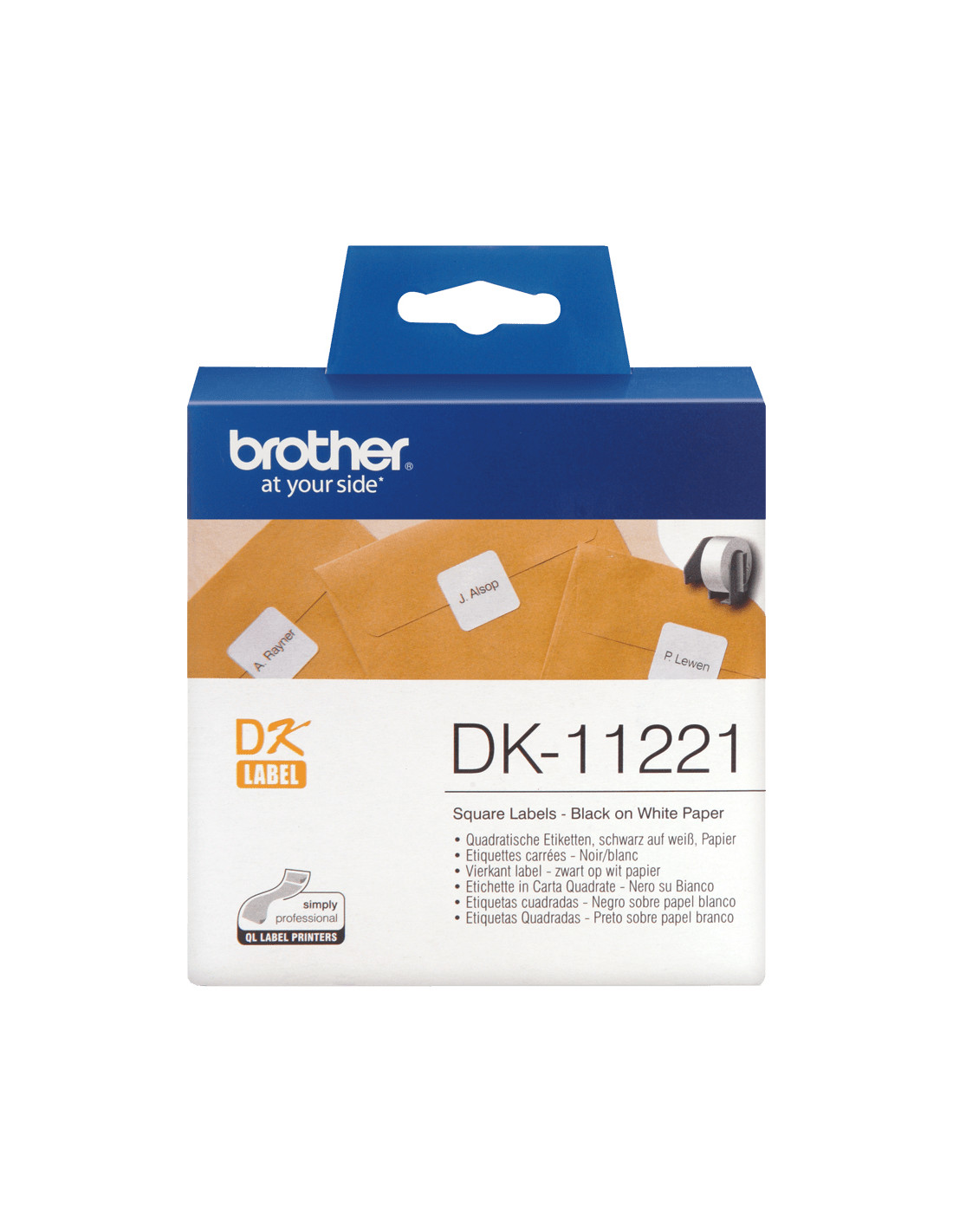 Etichette quadrate Brother DK-11221, carta bianca, 23 x 23 mm, 1.000 etichette per rotolo. Per QL-500, QL-500A, QL-500BS, QL-500BW, QL-550, QL-560, QL-560VP, QL-570, QL-580N, QL-650TD, QL-700, QL-710W, QL-720NW, QL-1050, QL-1060N, QL-800. QL-810W, QL-820NWB. I materiali di consumo Brother sono appositamente studiati per assicurare le massime prestazioni con il tuo dispositivo.