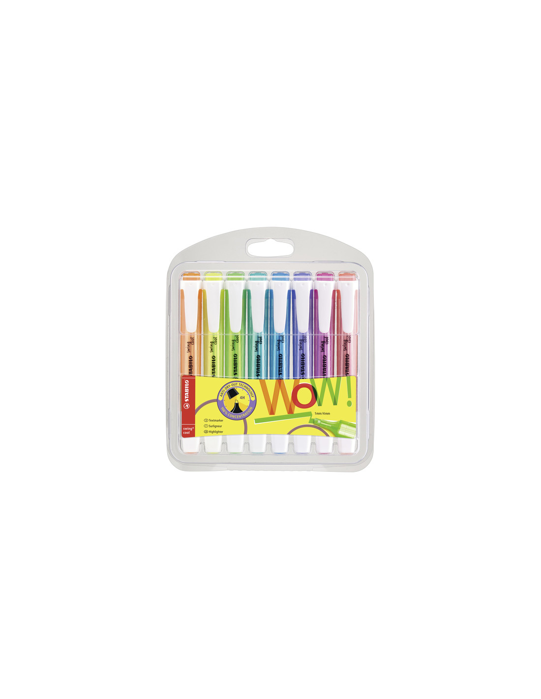STABILO swing cool Pastel evidenziatore 8 pz Punta smussata Blu, Verde, Arancione, Rosa, Rosso, Viola, Giallo