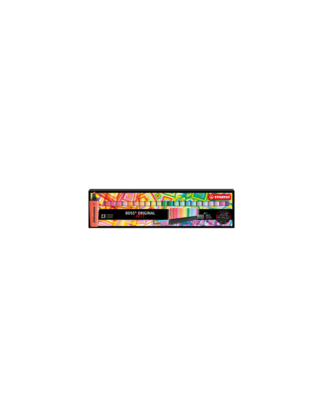 STABILO BOSS ORIGINAL. Quantità per pacco: 23 pz, Colore penna: Multicolore, Tipo di punta: Punta smussata. Larghezza imballo: 47 mm, Profondità imballo: 440 mm, Altezza imballo: 115 mm. Paese di origine: Germania