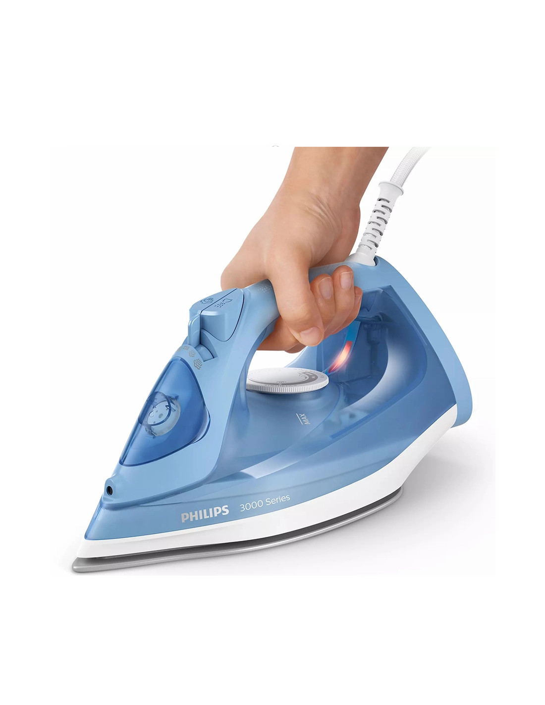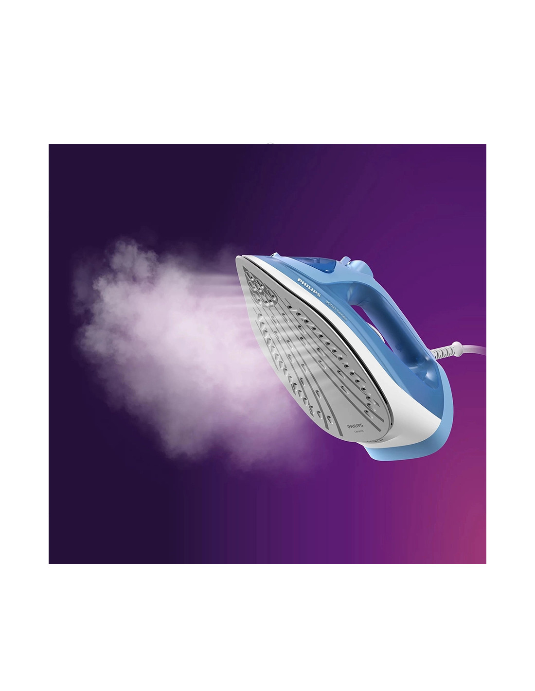 Philips Serie 3000 DST3020/20. Tipo: Ferro a vapore, Materiale piastra: Piastra in Ceramica, Lunghezza cavo: 1,9 m. Potenza ferro: 2200 W, Tensione di ingresso AC: 220-240 V. Larghezza: 121 mm, Profondità: 290 mm, Altezza: 143 mm. Larghezza imballo: 320 mm, Profondità imballo: 162 mm, Altezza imballo: 130 mm. Durata della garanzia: 2 anno/i