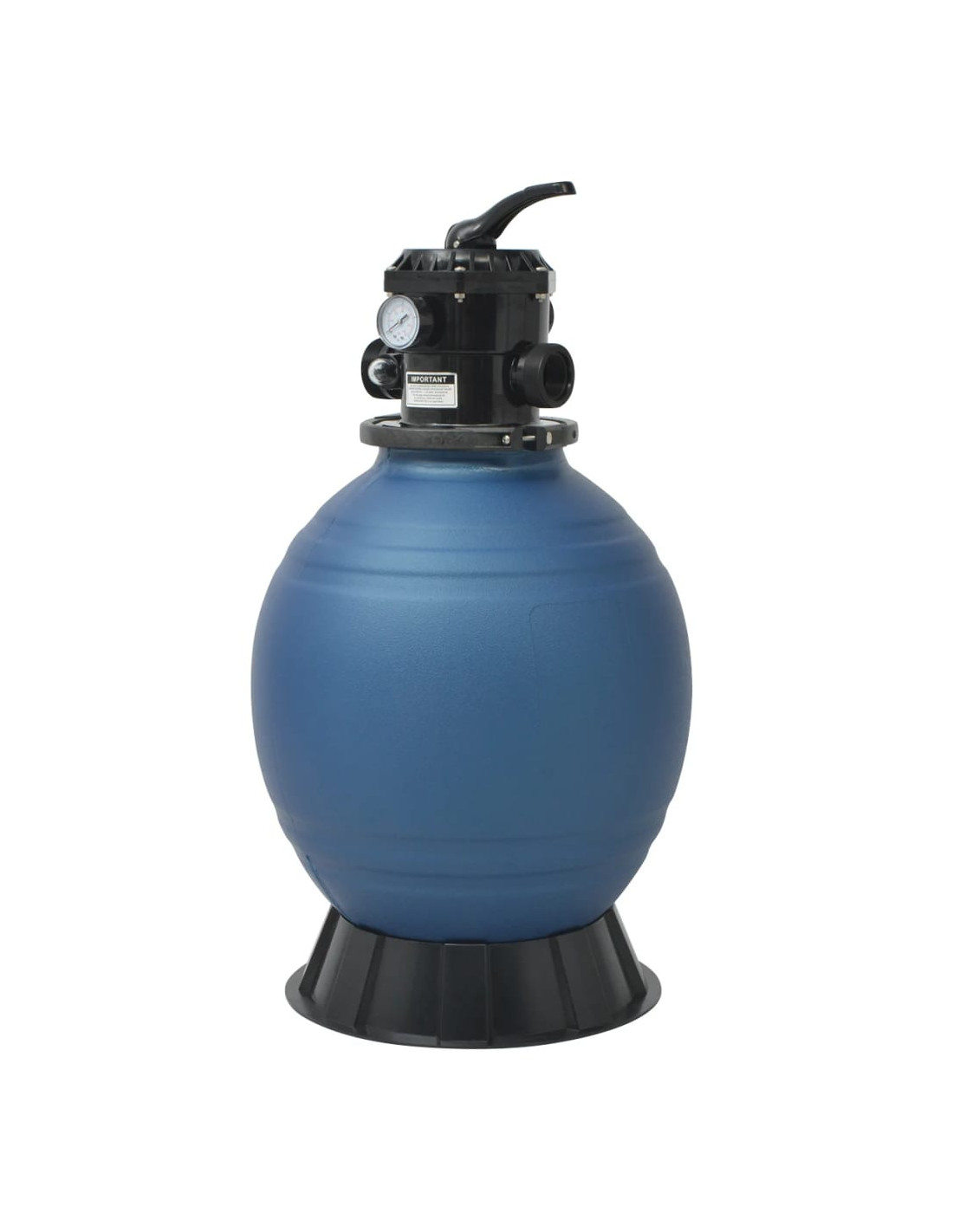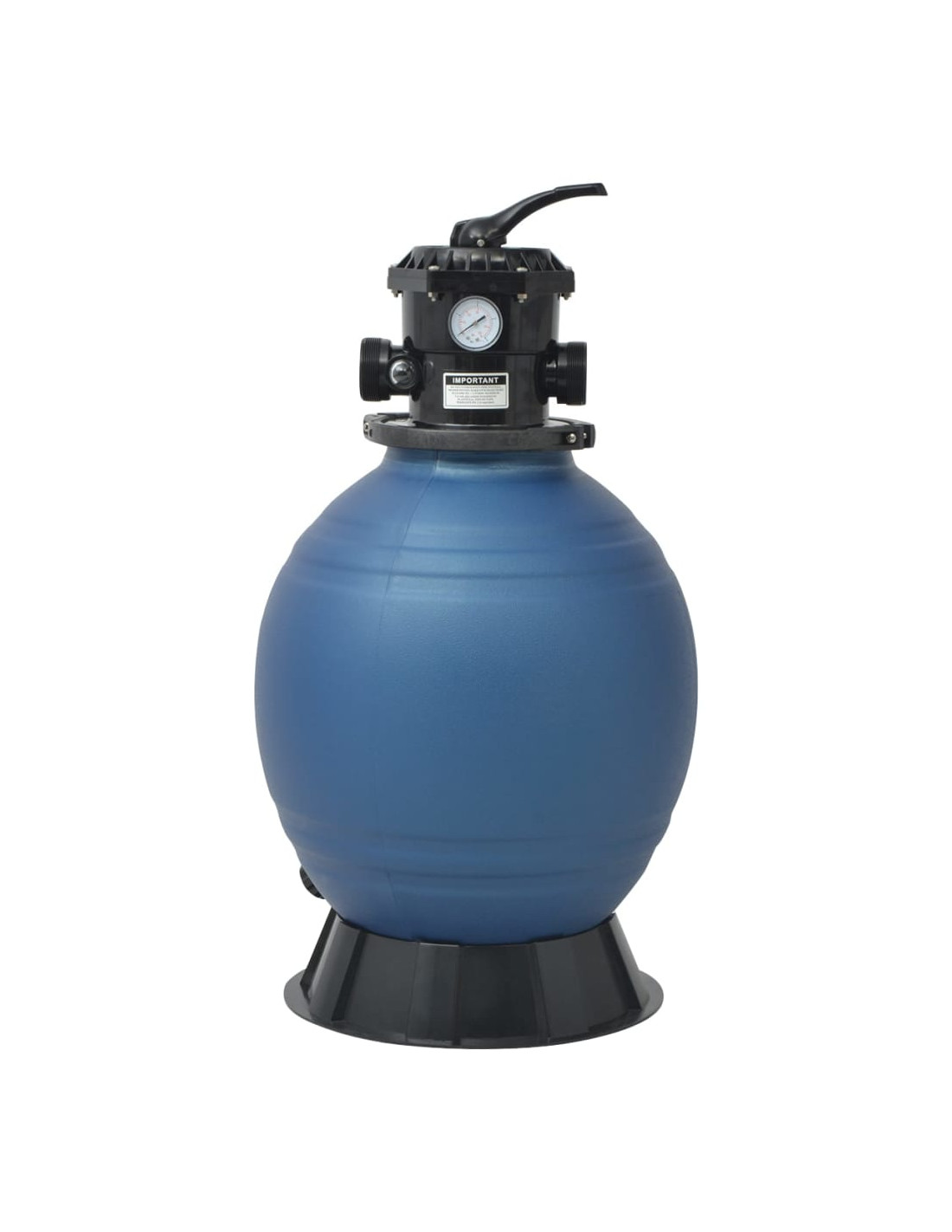 Realizzato in polietilene ad alta densità, il filtro a sabbia è altamente resistente. Questo filtro è progettato per raggiungere una portata di 9 m³ / h. La massima pressione di esercizio è pari 50 PSI. Per avviare l'operazione sono necessari 160 kg di sabbia filtrante (non incluso). Il filtro è dotato di una valvola multiporta con 6 posizioni: filtro (per filtrare la struttura dell'acqua), controlavaggio (per la pulizia del filtro), risciacquo (per il lavaggio del sistema di filtraggio), inverno (per l'inverno), ricircolo (per bypassare il letto filtrante per la piscina/spa), nonché chiuso (per spegnere tutto il flusso d'acqua al filtro).