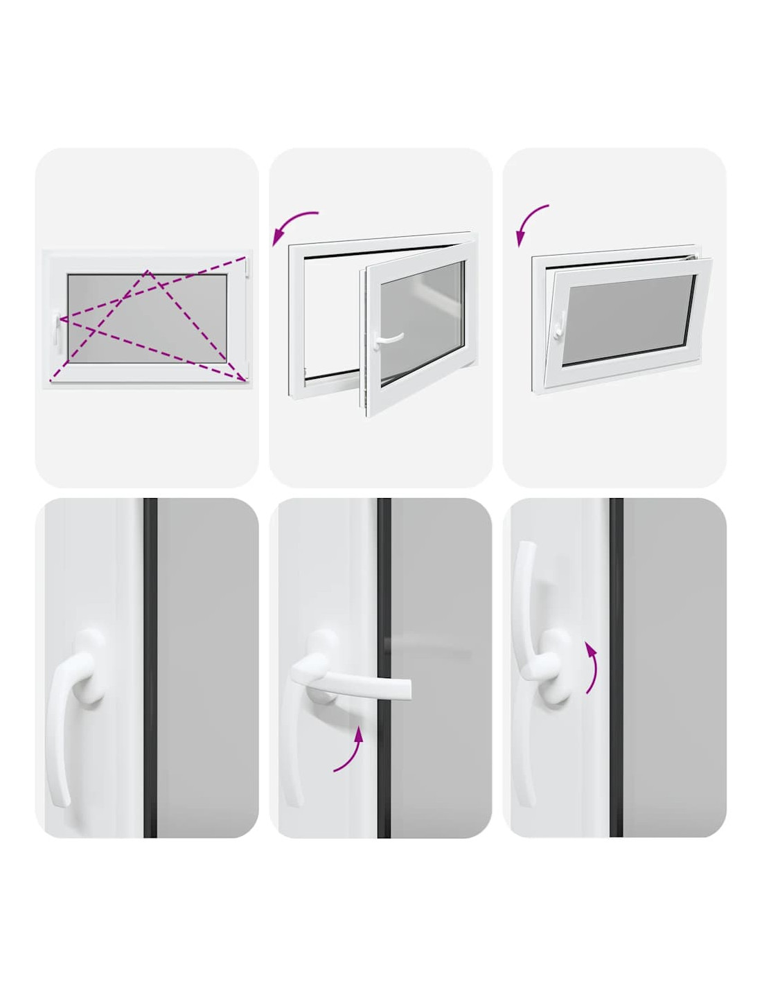 - Due modalità di ventilazione: la finestra di uscita può essere inclinata per la ventilazione, consentendo un flusso d'aria sicuro anche nei giorni di pioggia, impedendo al contempo l'ingresso di acqua. Può anche essere ruotato orizzontalmente verso l'interno, il che lo rende ideale per una ventilazione completa o una facile pulizia.