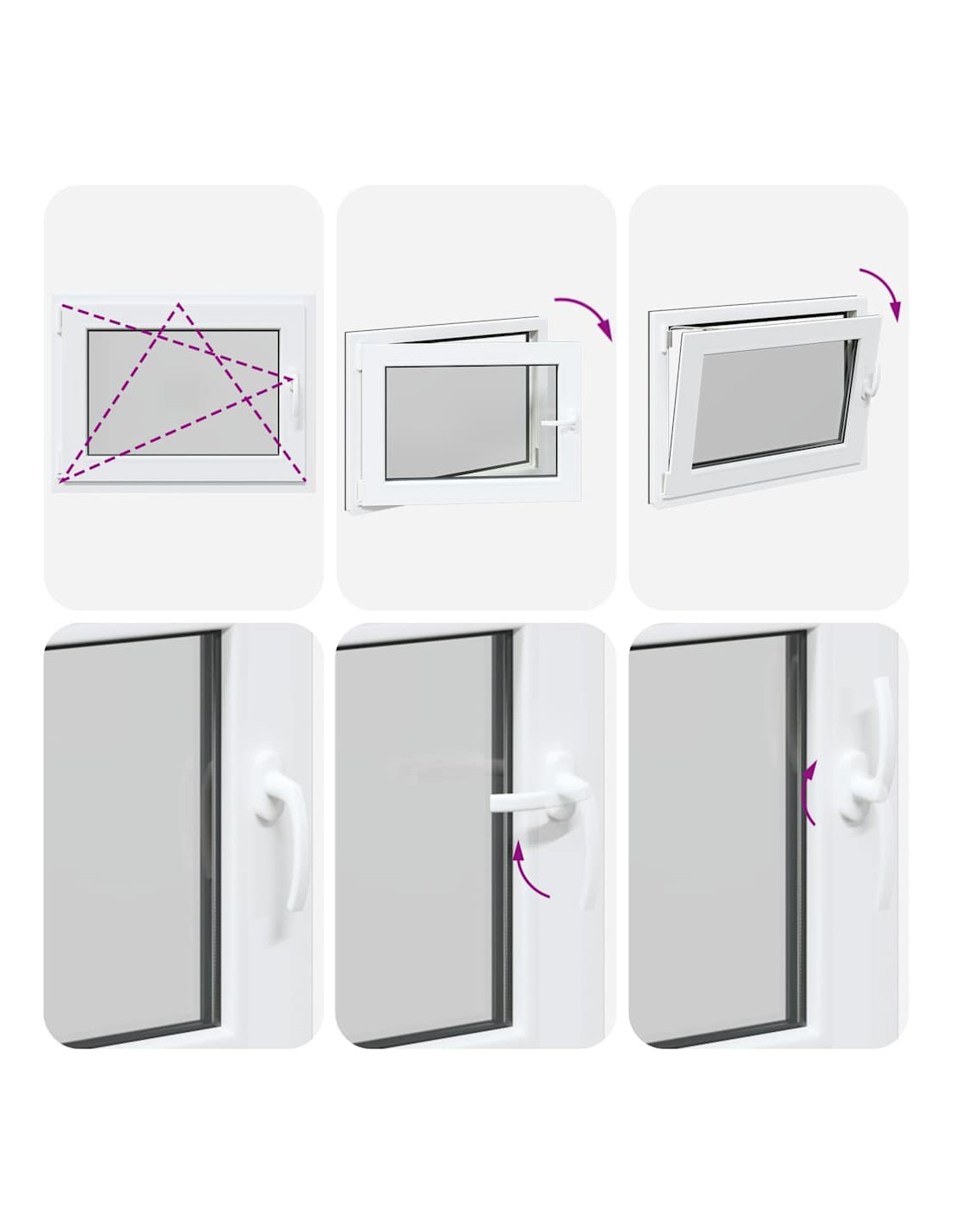 - Due modalità di ventilazione: la finestra di uscita può essere inclinata per la ventilazione, consentendo un flusso d'aria sicuro anche nei giorni di pioggia, impedendo al contempo l'ingresso di acqua. Può anche essere ruotato orizzontalmente verso l'interno, il che lo rende ideale per una ventilazione completa o una facile pulizia.