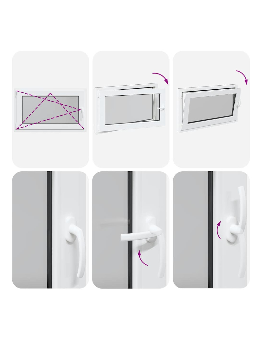 - Due modalità di ventilazione: la finestra di uscita può essere inclinata per la ventilazione, consentendo un flusso d'aria sicuro anche nei giorni di pioggia, impedendo al contempo l'ingresso di acqua. Può anche essere ruotato orizzontalmente verso l'interno, il che lo rende ideale per una ventilazione completa o una facile pulizia.
