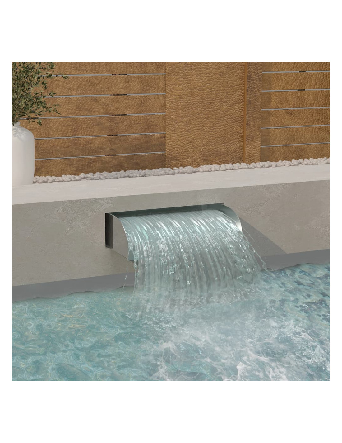 Realizzata in acciaio inossidabile 304 di alta qualità, questa fontanella a cascata è resistente al cloro e altamente durevole. È appositamente progettata per garantire un flusso d'acqua costante e uniforme. La cascata è dotata di luci a LED e l'adattatore è incluso nella consegna. Non potrete farne a meno per godervi il suono rilassante e la vista dell'acqua che scorre!