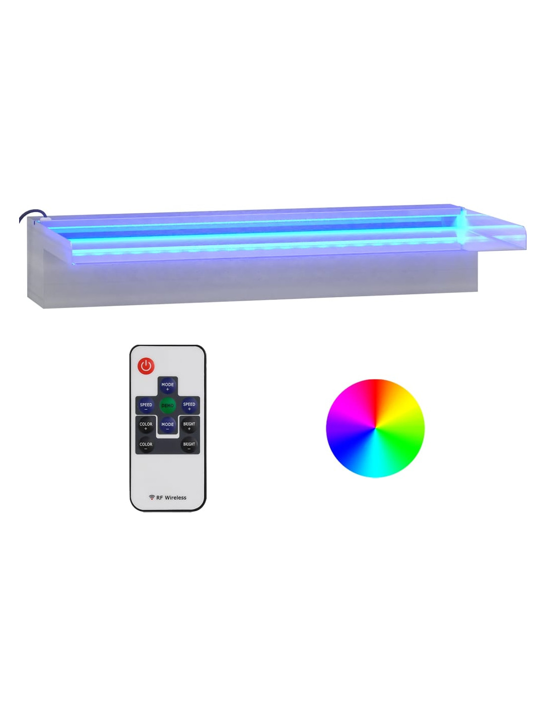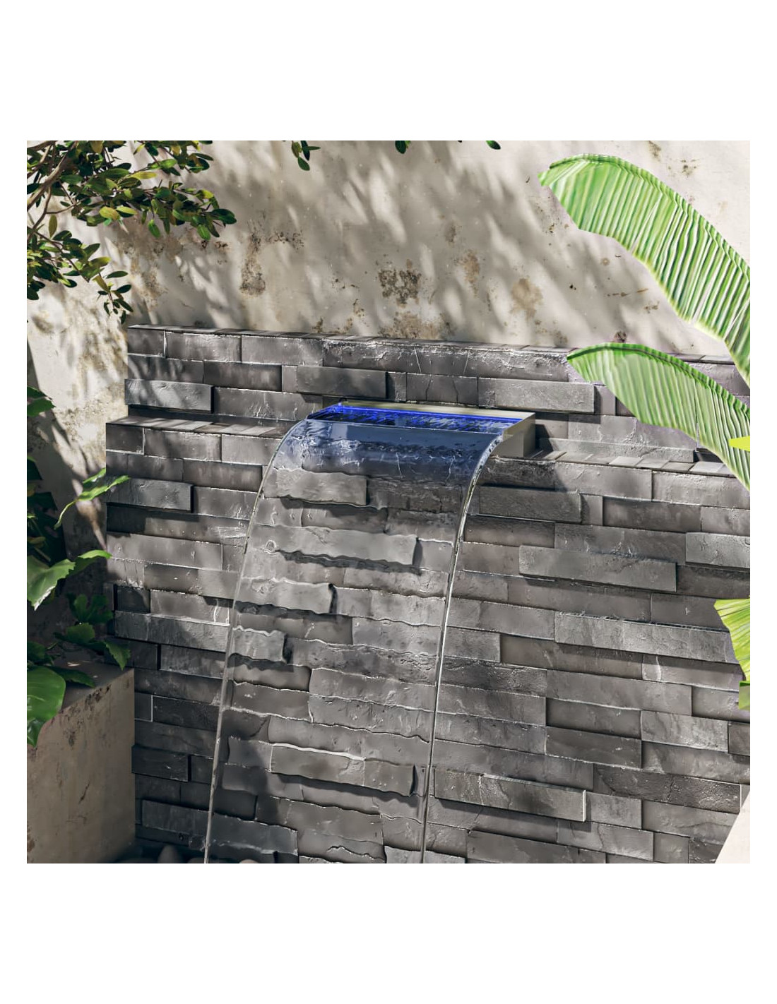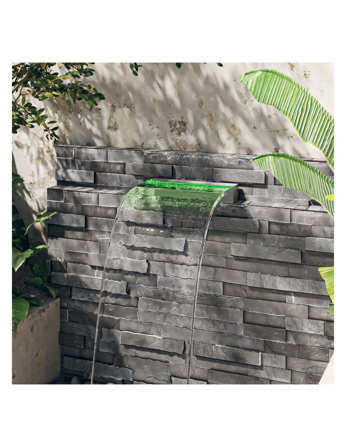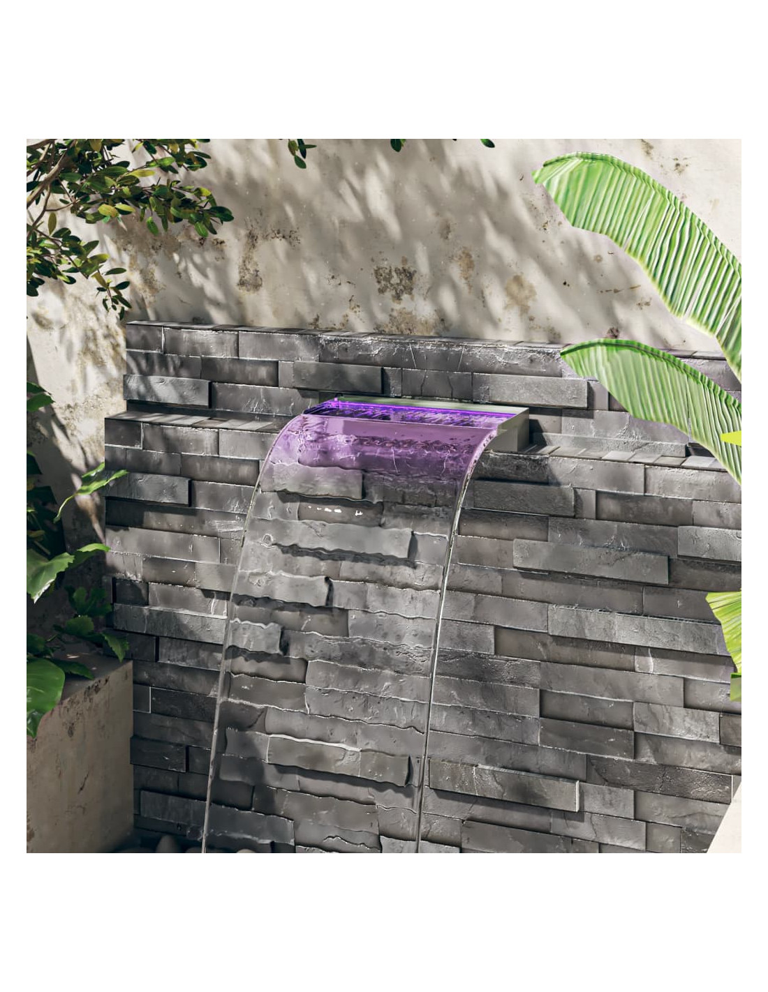 Questo sfioratore a cascata con luci LED colorate è un'aggiunta decorativa al vostro laghetto o alla vostra piscina. Acquistatene uno ora e godetevi il suono e la vista dell'acqua che cade!